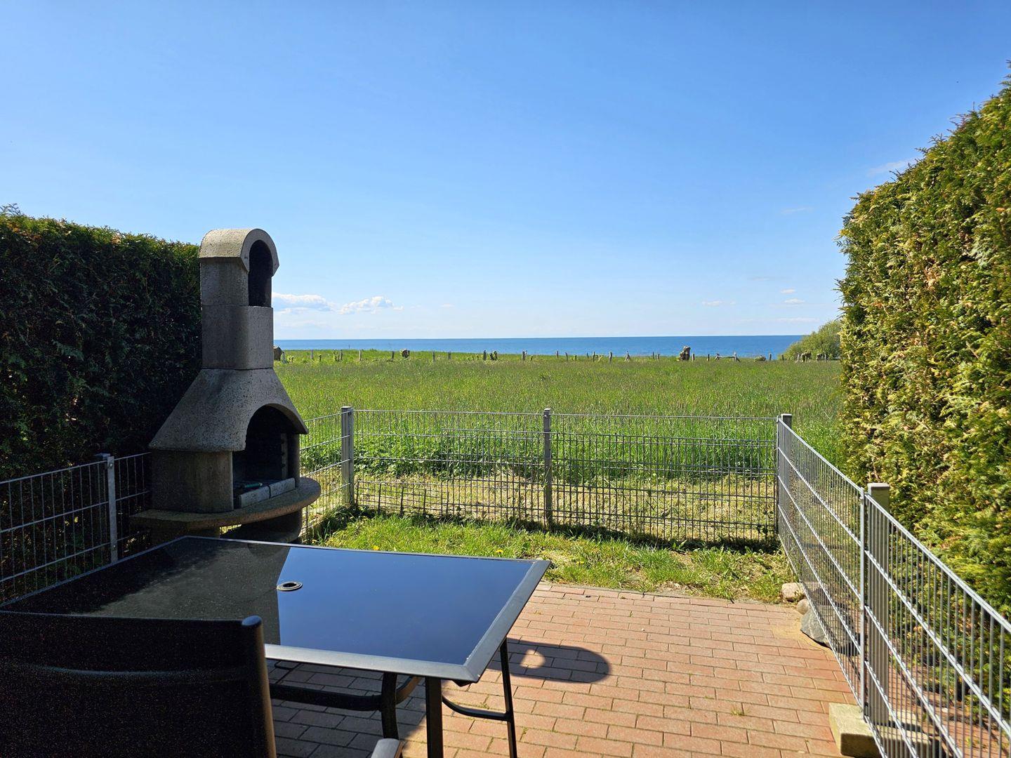 Gemütliche 2-Raum-Wohnung für 3 Personen mit Meerblick und umzäunter Terrasse.