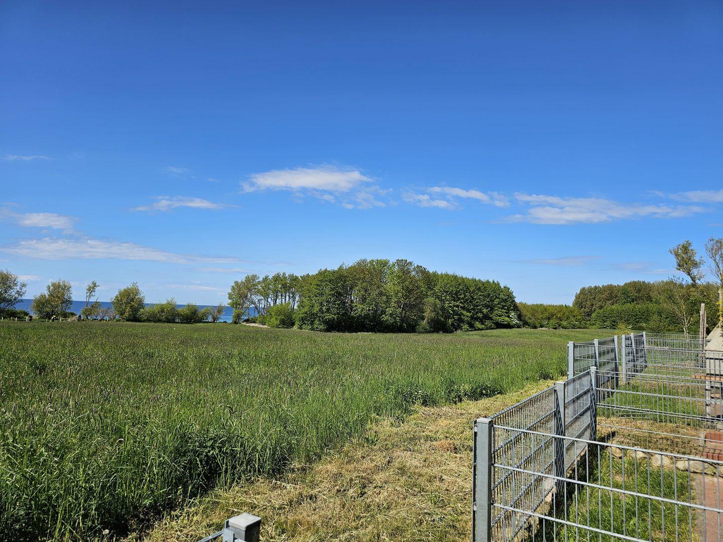 Eingebettet in Wiesen und Felder befindet sich die Wohnung für 3 Personen auf einem idyllischen 3-Seiten-Hof mit einem tollen Blick auf die Ostsee.