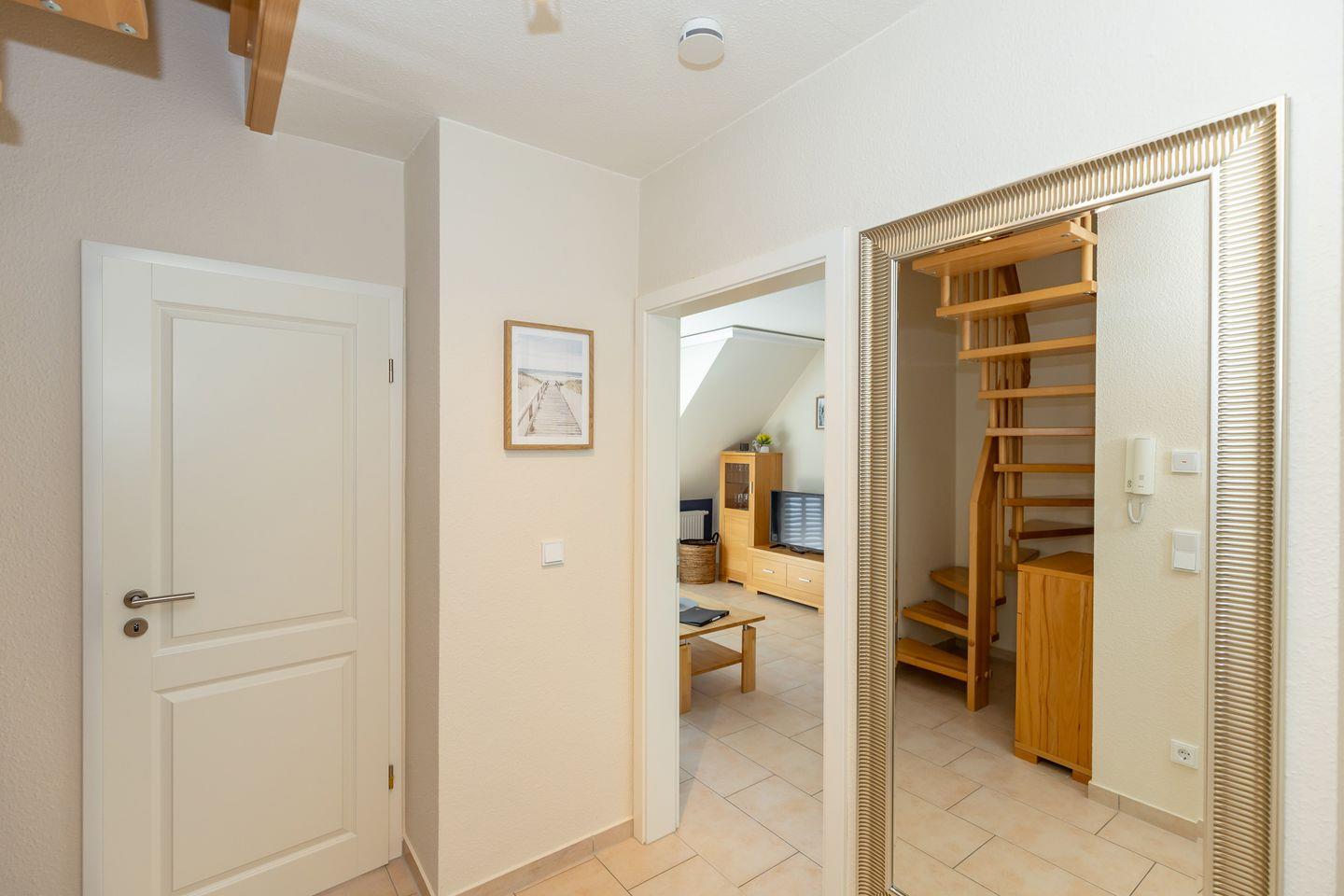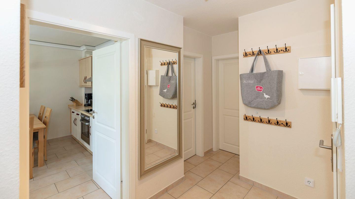Vom Flur mit Garderobe, Spiegel und Kommode erreichen Sie bequem alle Räume Ihrer Ferienwohnung.