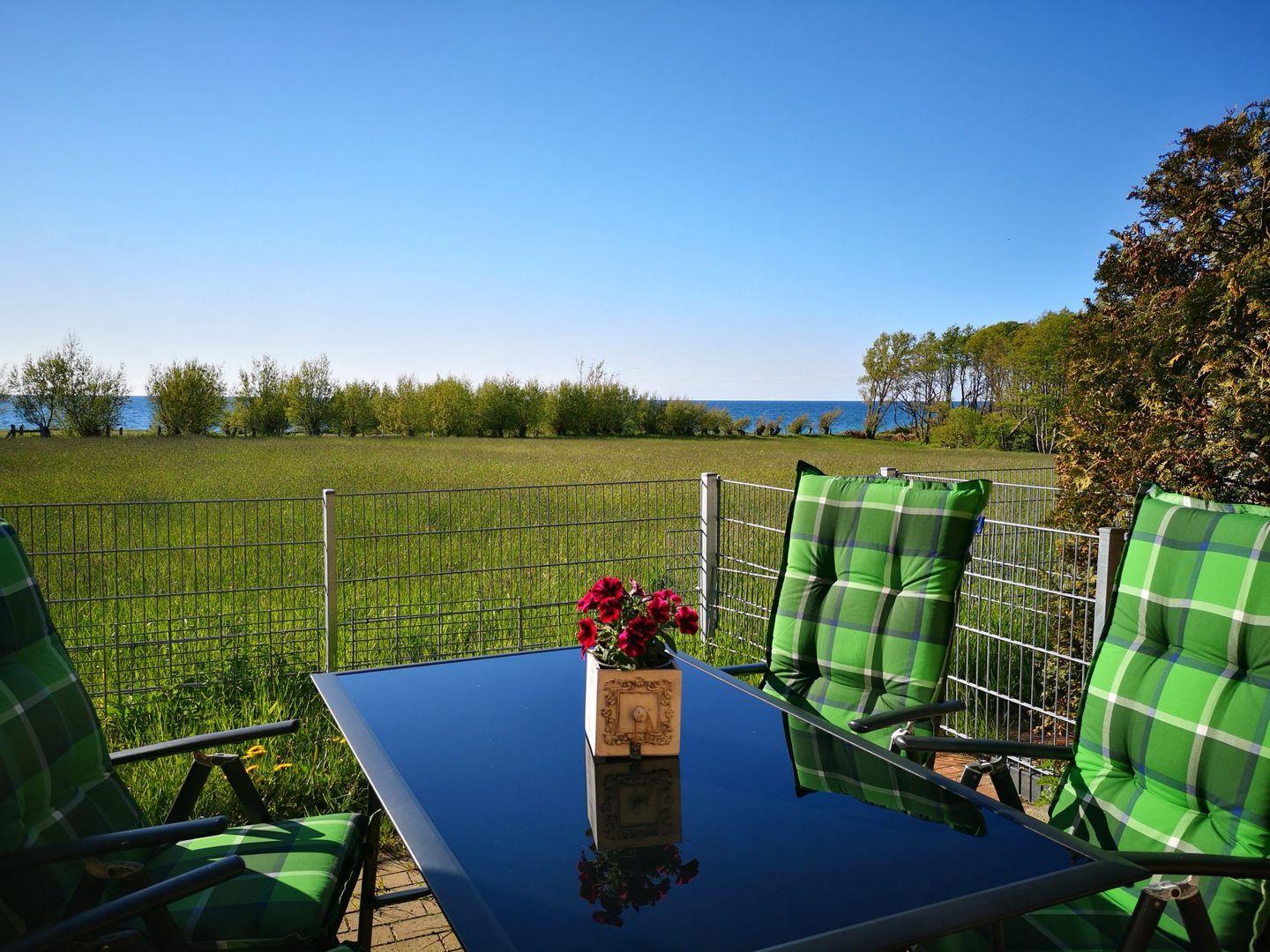 Gemütliche 2-Raum-Wohnung für 2 Personen mit Meerblick und umzäunter Terrasse.