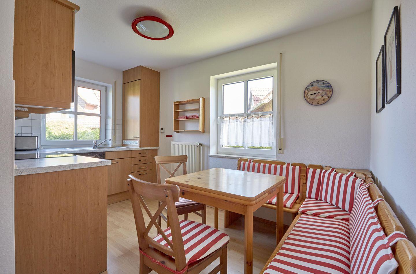 Die separate Küche mit Essecke ist ausgestattet mit Spülmaschine, Herd mit Cerankochfeld und Backofen, Kühlschrank mit Eisfach, Mikrowelle und Kaffeemaschine.