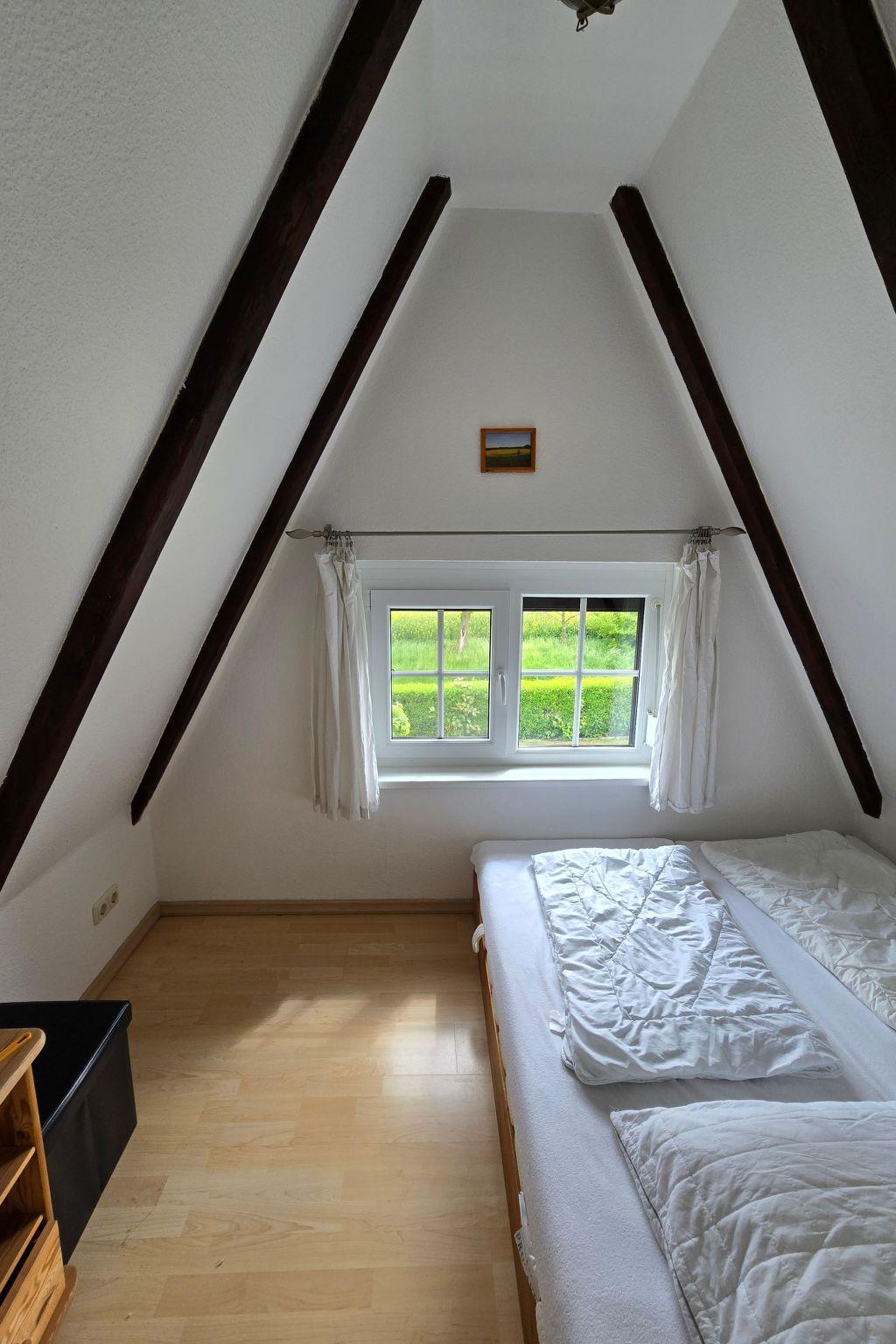 The house provides 50m² of living space for four people. It has a cosy living room with a sofa, an armchair, a coffee table, a fireplace (firewood free of charge), a CD/radio stereo system, a Full HD TV (satellite receiver) with a Blu-ray player and a dining table with chairs. The kitchen is equipped with an oven, a ceramic hob, a fridge with a freezer compartment, a dishwasher, a microwave, a toaster, a kettle, a coffee machine, and a table and chairs. The two bedrooms each have a double bed (180cm wide). The bathroom is fitted with a shower, toilet, washbasin, hairdryer and washing machine, for use free of charge. The house is laid with low-maintenance tiles and laminate. The owner can provide board games for all ages for games evenings. All the rooms in the house have heating and free wireless Internet access. There is a telephone for inland calls (no mobile calls).