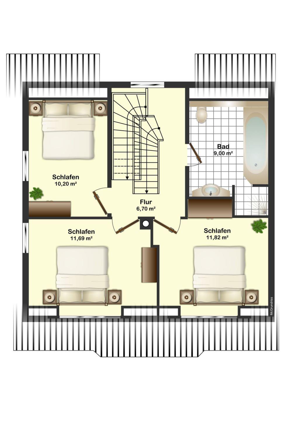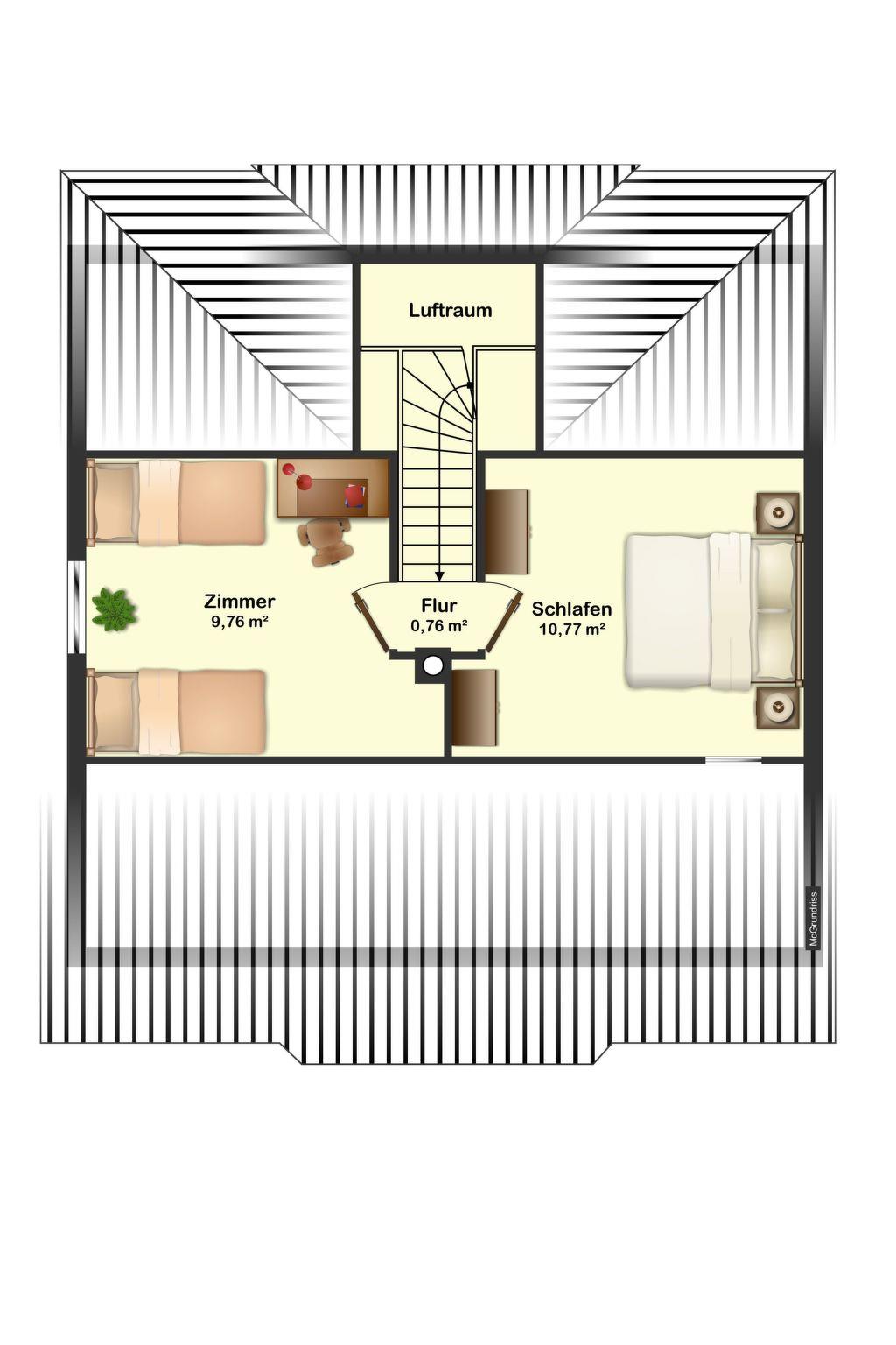 Upstairs you will find 3 bedrooms and the wellness bathroom. All beds have adjustable slatted frames and high-quality mattresses. All bedroom windows are fitted with fly screens and blackout blinds. On this level you will find three bedrooms, each with a double bed (180 x 200 cm), bedside tables or bedside tables, wardrobe and satellite TV. There is a safe in one of the bedrooms for your valuables. Upstairs you will also find the wellness bathroom with bathtub, walk-in shower, toilet and wash hand basin. The converted attic is the ideal home for your children. There are 2 bedrooms. The bunk bed room with two single beds (90 x 200 cm), desk and wardrobe, and a second room with a double bed (180 x 200 cm), bedside tables, wardrobe, sideboard and satellite TV. You can park two cars in a row right next to the house and lock your bicycles in your own bicycle shed.