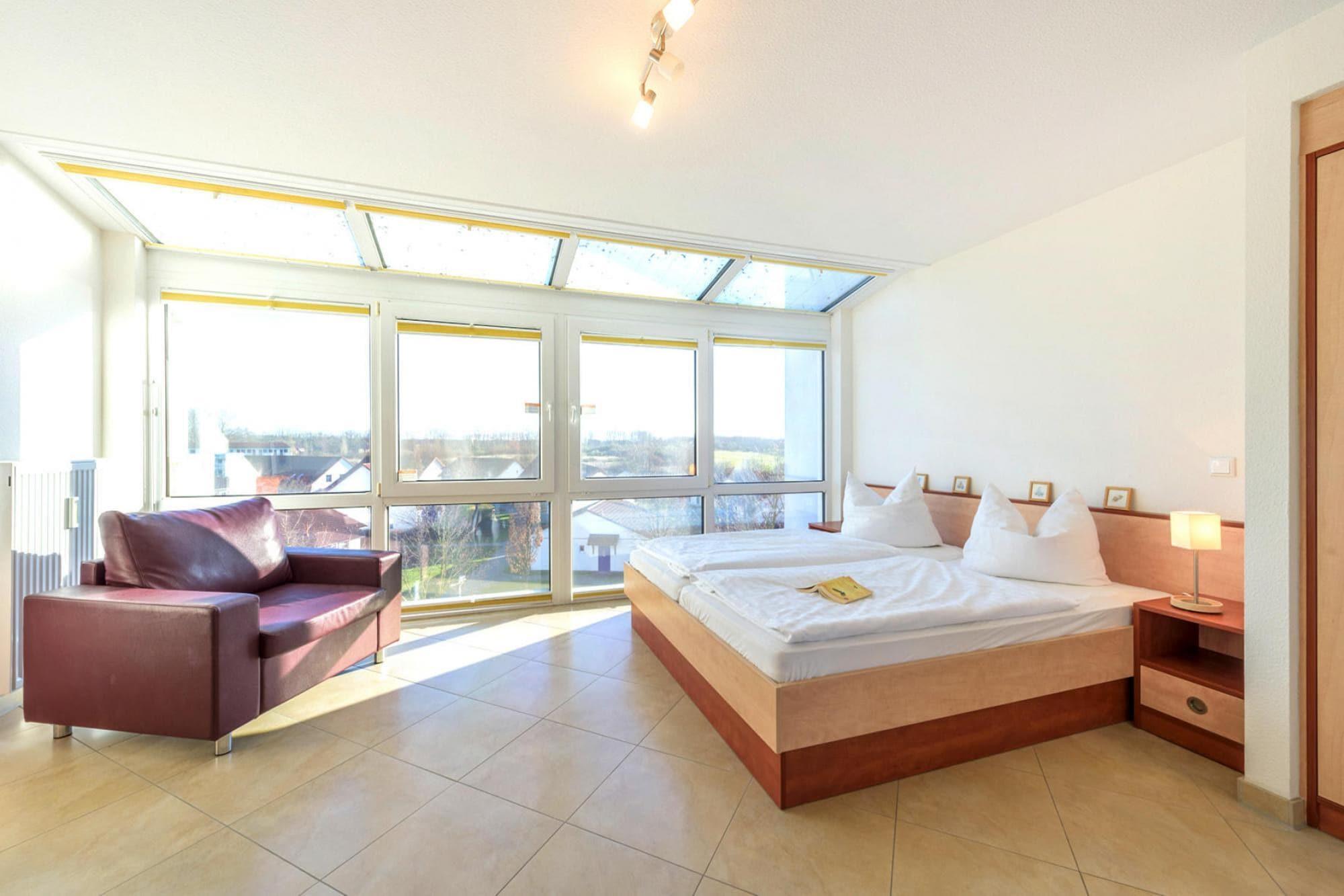 Kun 600 meter adskiller din rummelige og moderne ferielejlighed med WiFi fra de fine sandstrande ved Østersøen. Elskere af den maritime livsstil vil finde det, de leder efter her - i stuen og i et af soveværelserne er en væg og endda en del af loftet fuldstændig glaseret og giver dig en uhindret udsigt over Salzhaff. Søde drømme er garanteret i det største af soveværelserne: Herfra kan du endda se himlen fra din seng! Og der er kun 50 meter til Haffpromenaden. Åbn dørene til din franske altan og tag en dyb indånding: Den friske Østersøluft er virkelig en fornøjelse for alle sanser. Lejligheden er beliggende på toppen af et familievenligt feriekompleks med legeplads og trampoliner. Rerik ligger på den nordøstlige side af Salzhaffes, en del af Wismar-bugten mellem fastlandet og Wustrow-halvøen. Ostseebad er ekstremt familievenligt: Der er eventyrlegepladser og et farverigt arrangementsprogram for unge og gamle. Dykker- og ridekurser kan bookes på stedet, cykling og & raquo; økomobil & laquo; er til leje. Den historiske bykerne omkring kirken er bevaret, og også her er der masser af mad: frisk eller nyrøget fisk fås hver dag direkte fra de lokale fiskere. Detaljer: WiFi Aktiviteter i nærheden: Endeløse strande og kyster omkring Rerik får solbadere og vandentusiaster til at banke hurtigere, men aktive feriegæster får også noget for pengene her: På Salzhaff kan du ro, sejle eller tage en vandcykel. Lagunen byder også på ideelle forhold for begyndere surfere, mens eksperter foretrækker den mere krævende Østersø med boardet. En sejltur fra lagunen rundt om Wustrow-halvøen lover masser af sjov for unge og gamle. De, der foretrækker at holde tørre fødder, kan tage på cykelture, gåture og vandreture Ikke egnet til personer med nedsat mobilitet