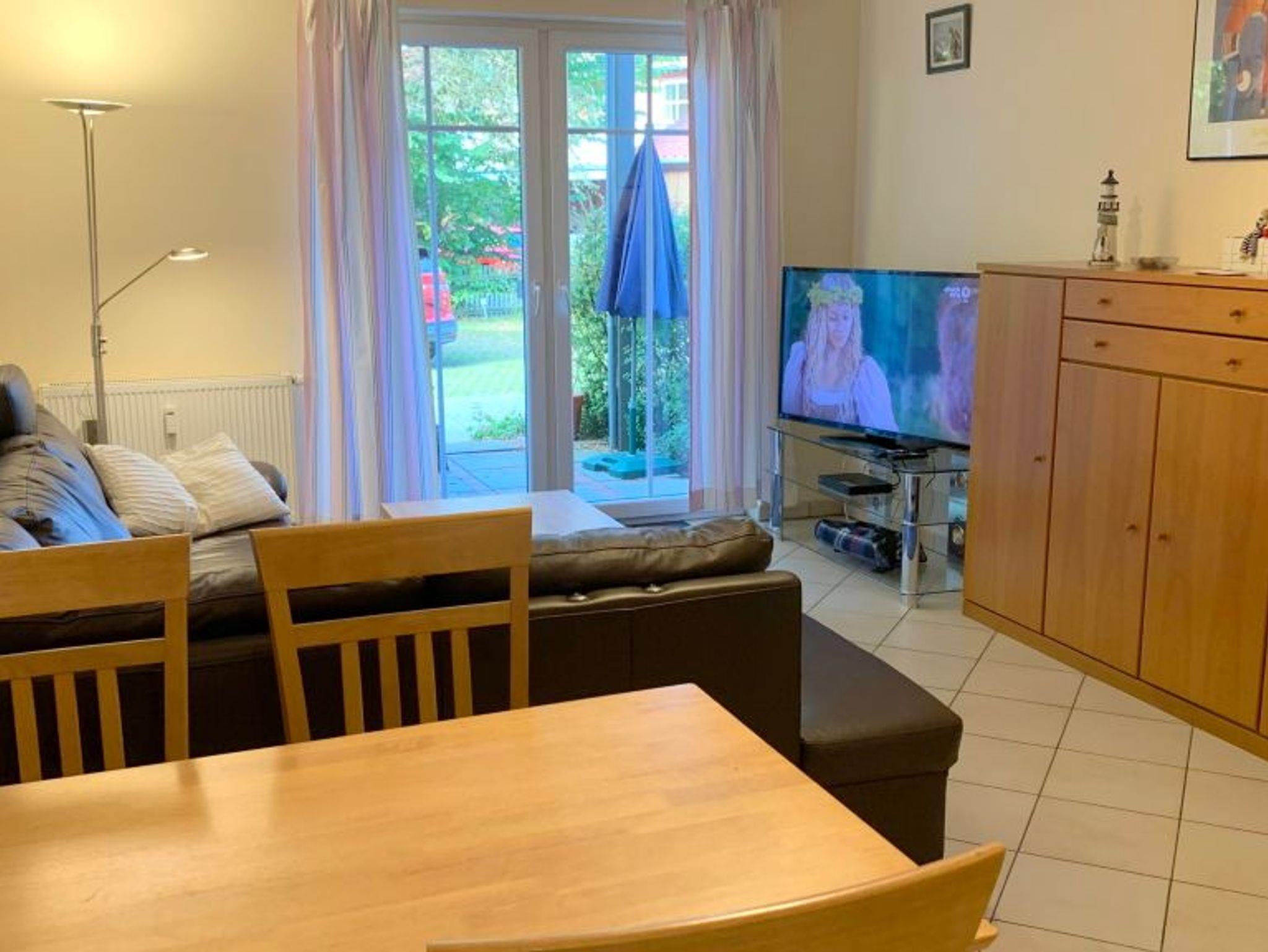 Sehr gemütlich eingerichtete Ferienwohnung mit Westterrasse, Parkplatz am Haus.Die Wohnung hat ein Wohnzimmer mit Einbauküche,Spülmaschine, Microwelle, ein Schlafzimmer, ein Bad mit Dusche. Es ist ein Fernseher vorhanden.
