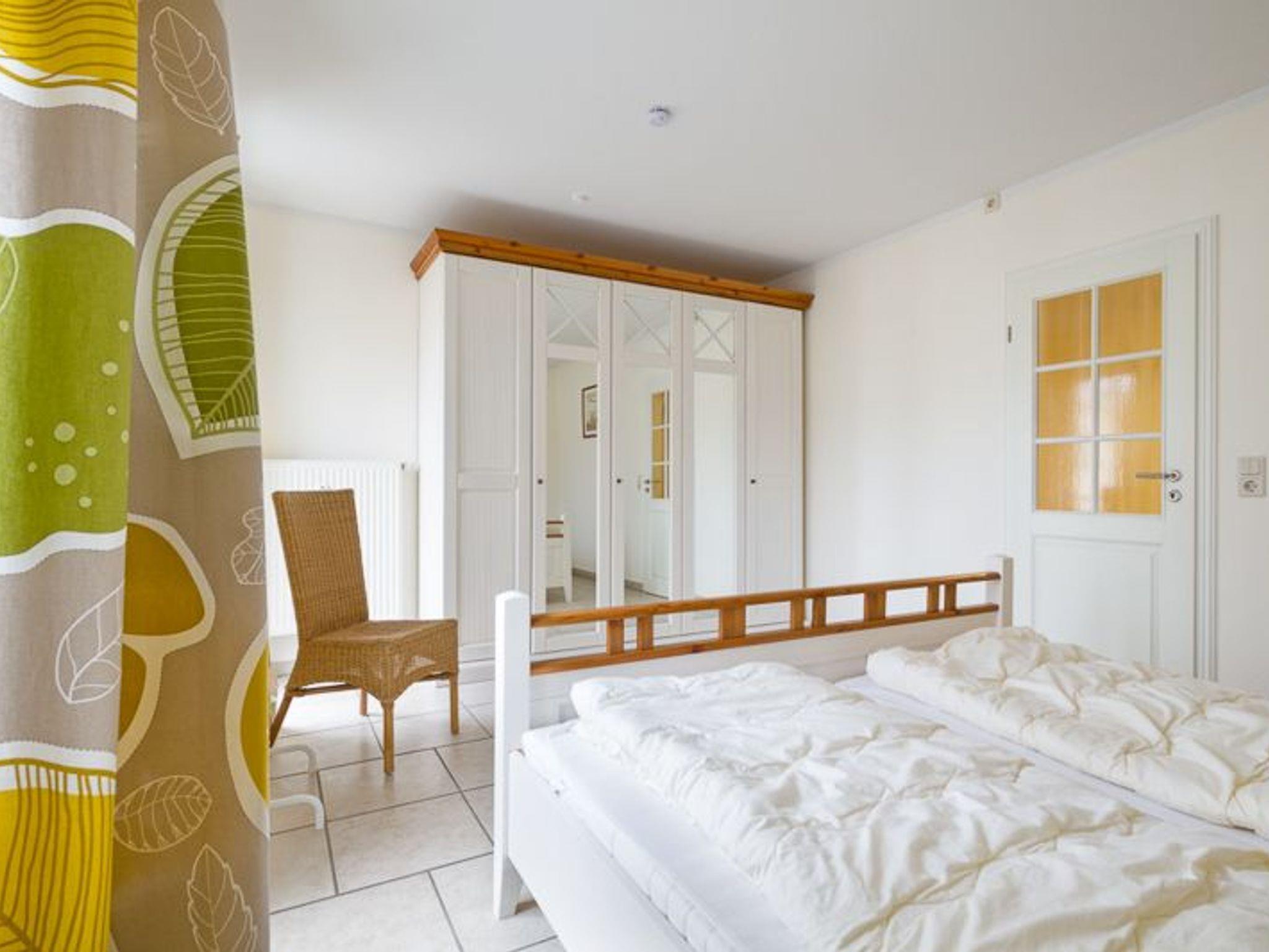 Schlafzimmer mit 2 Einzelbetten und Kleiderschrank mit herrlichem Blick auf Ostsee und Salzhaff.