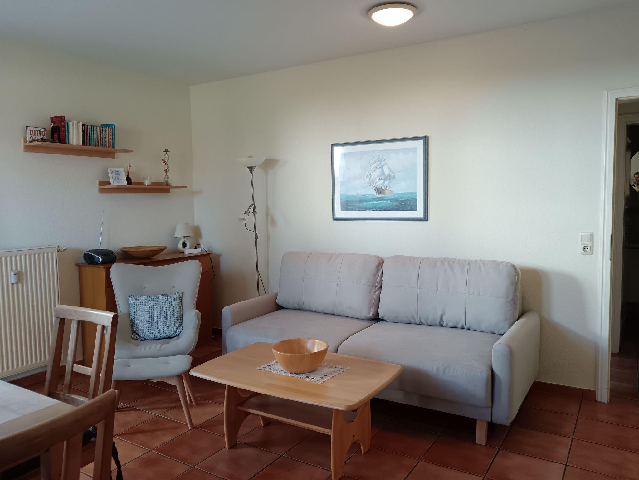 Die kleine, helle und freundliche Ferienwohnung ist ebenerdig mit Terrasse und Gartenzugang angelegt. Sie verfügt über einen Wohnbereich mit integrierter Küchenzeile, einem Schlafzimmer mit Doppelbett und einem Badezimmer mit Dusche und WC. Das Auto parken Sie ganz bequem in der Tiefgarage. Der Stellplatz ist identisch mit der Wohnungsnummer. Schwimmbad (täglich geöffnet) und Sauna (dienstags, freitags und samstags geöffnet) stehen ebenfalls zur Verfügung. Wäschepakete können jederzeit zugebucht werden. 20,00 Euro pro Person. Sie können auch gern Ihre eigene Bettwäsche und Handtücher mitbringen.