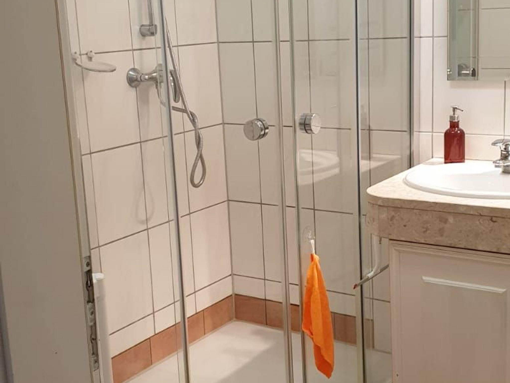 - Badezimmer: Regendusche, WC, Haartrockner