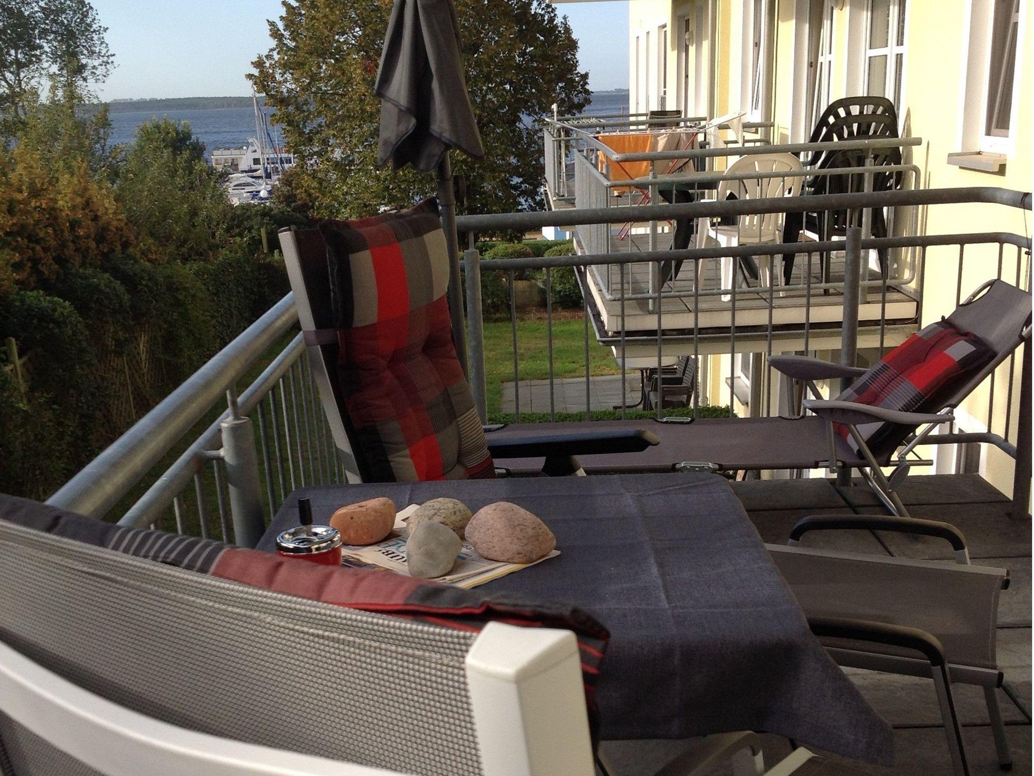 - Balkon (Blick aufs Haff) mit Gartenmöbel