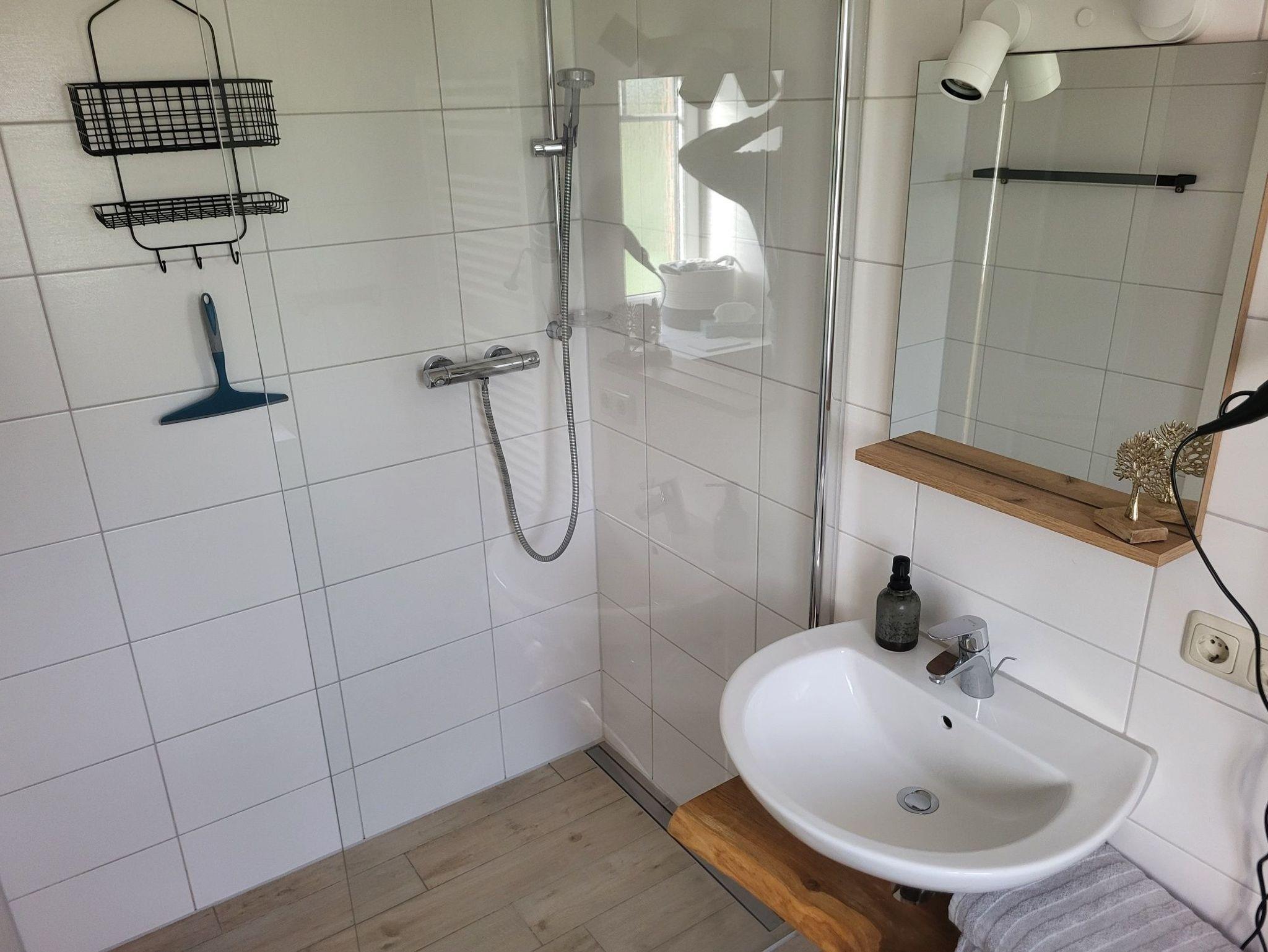 Das Ferienzimmer ist auch für Menschen mit Handicaps geeignet. Es ist ebenerdig, ohne Stufen und Schwellen und auch die Zugänge zur Terrasse und zur Dusche sind barrierefrei. Bitte beachte aber, dass der Duschzugang mit 48 cm Breite zu schmal für einen Rollstuhl ist. Die Wohnung ist daher nicht zu 100 % rollstuhlgerecht, sondern nur rollstuhl- und behindertenfreundlich. Das Haupthaus, in dem sich die Anmeldung und der Frühstücksraum befinden, ist über eine Rampe barrierefrei zugänglich.