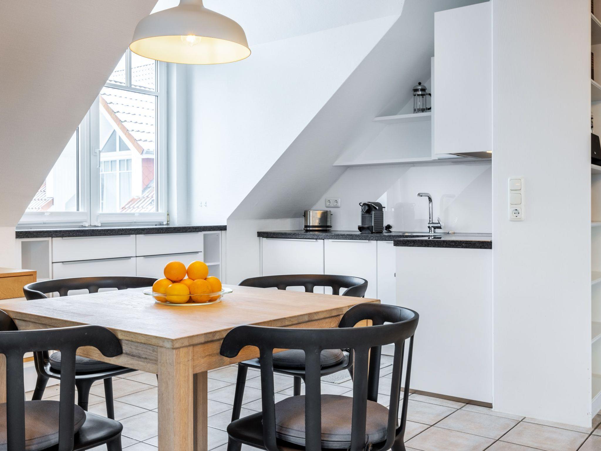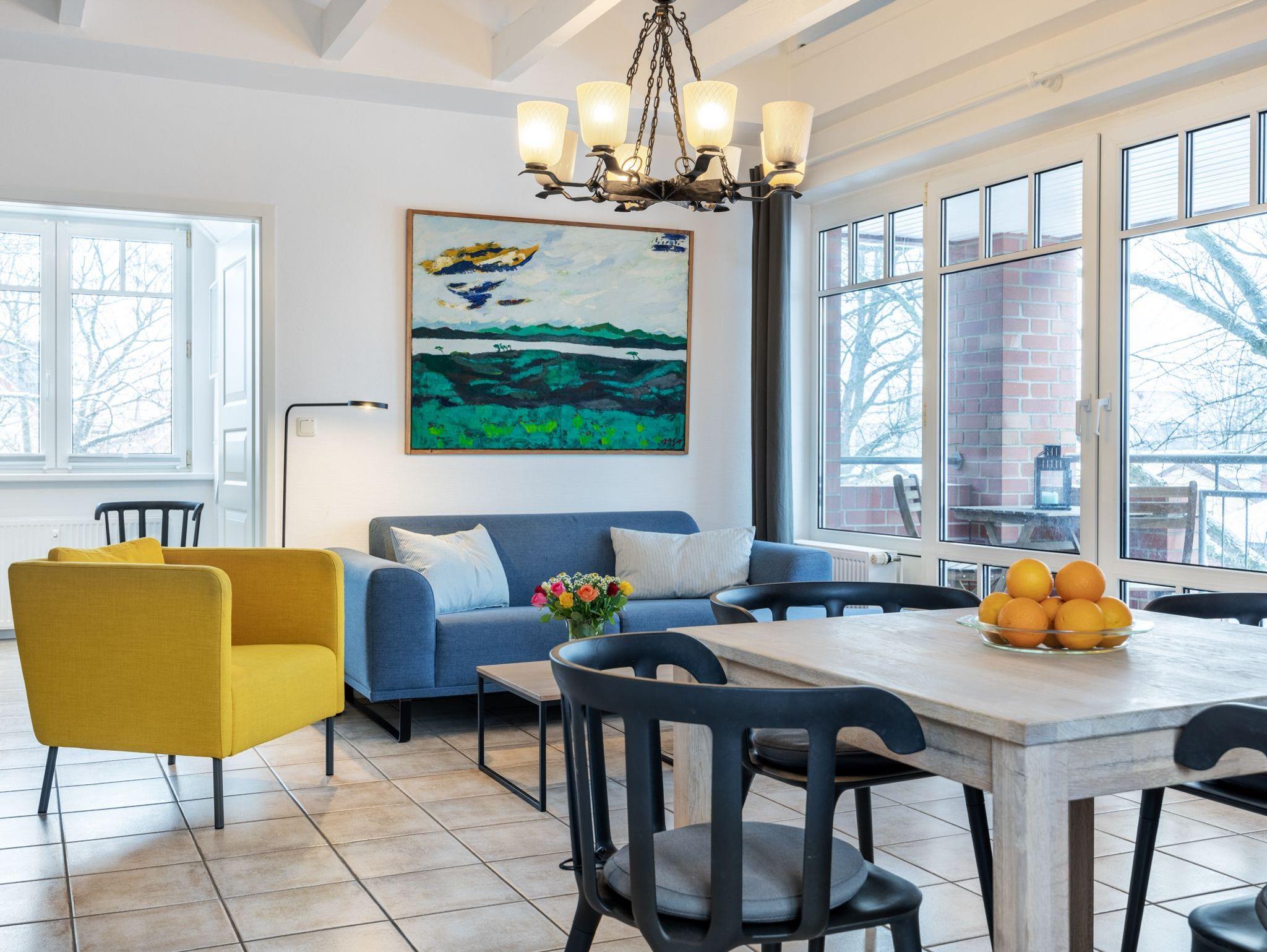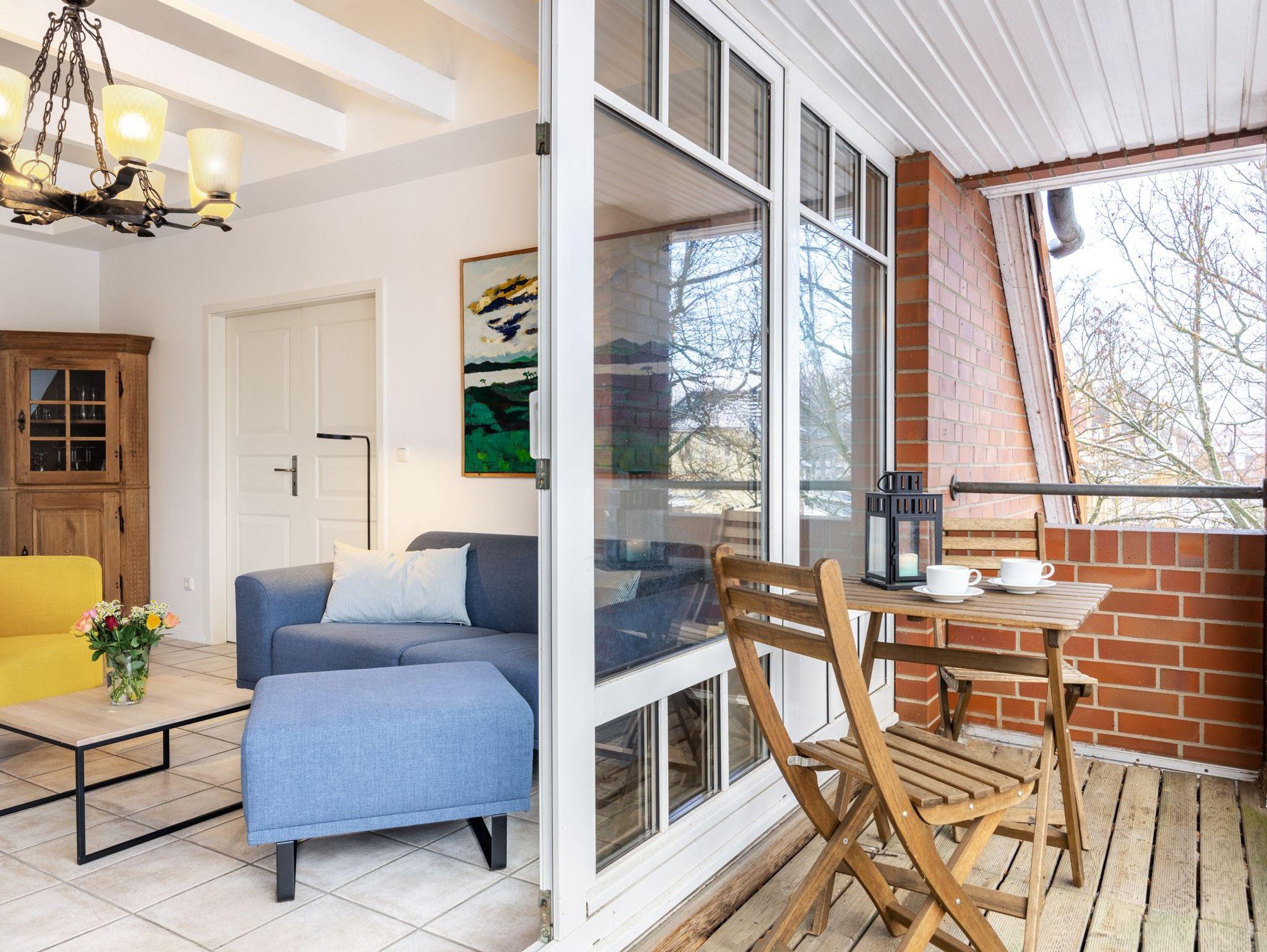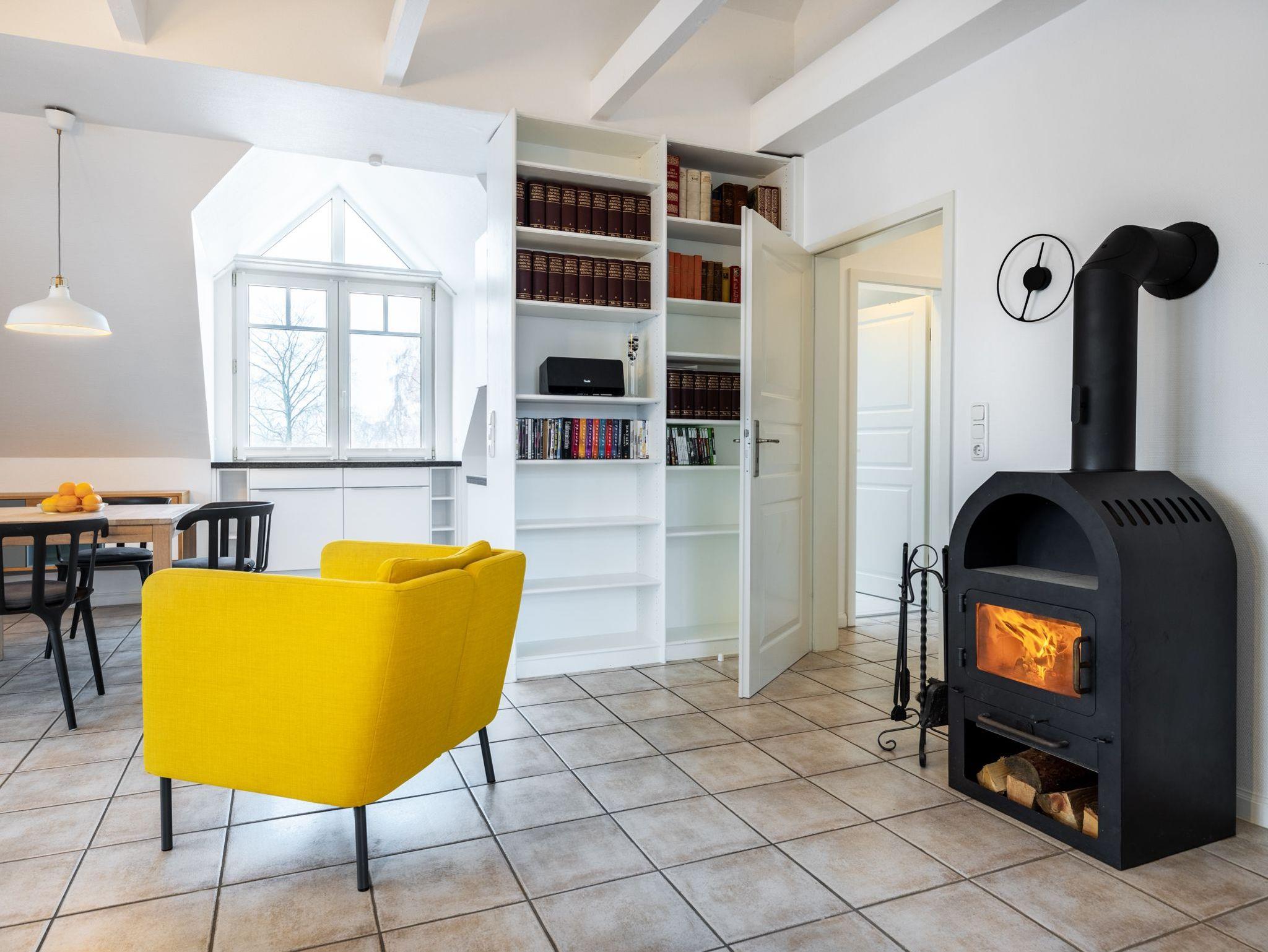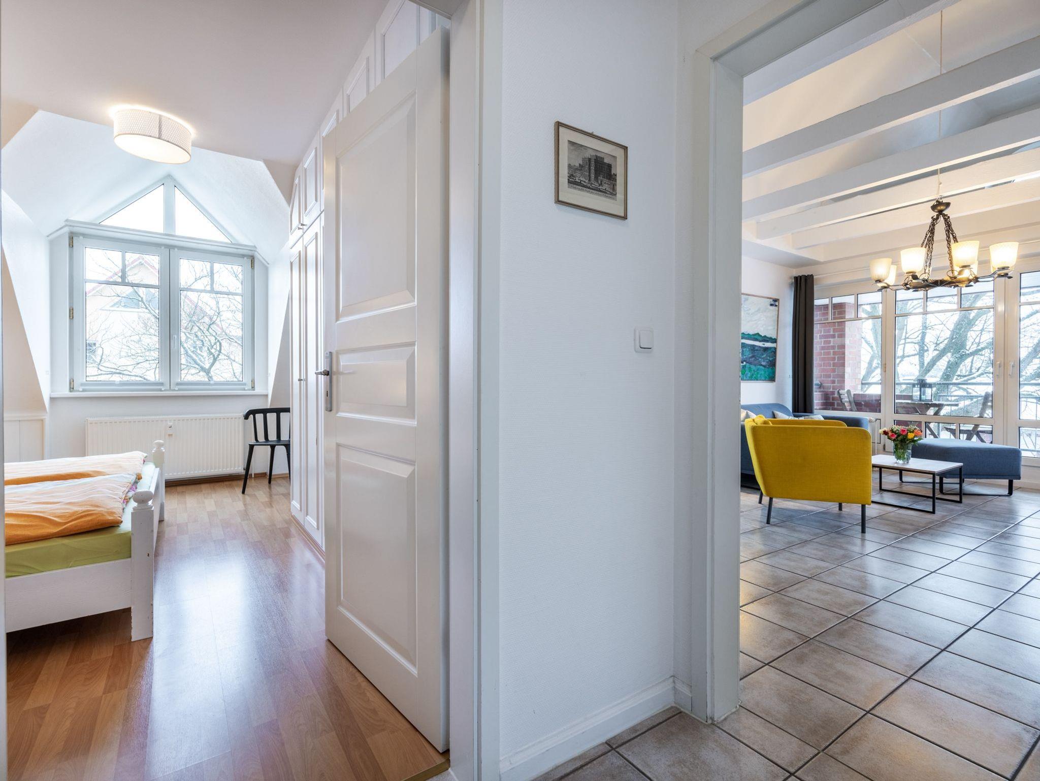 Das Ferienappartement liegt im 2.Obergeschoss der Ferienresidenz und verfügt über einen schönen Balkon, 2 Schlafzimmer und einen Kamin für gemütliche Urlaubsstunden. In den Wintermonaten kann man über die Dächer bis zum Haff schauen.