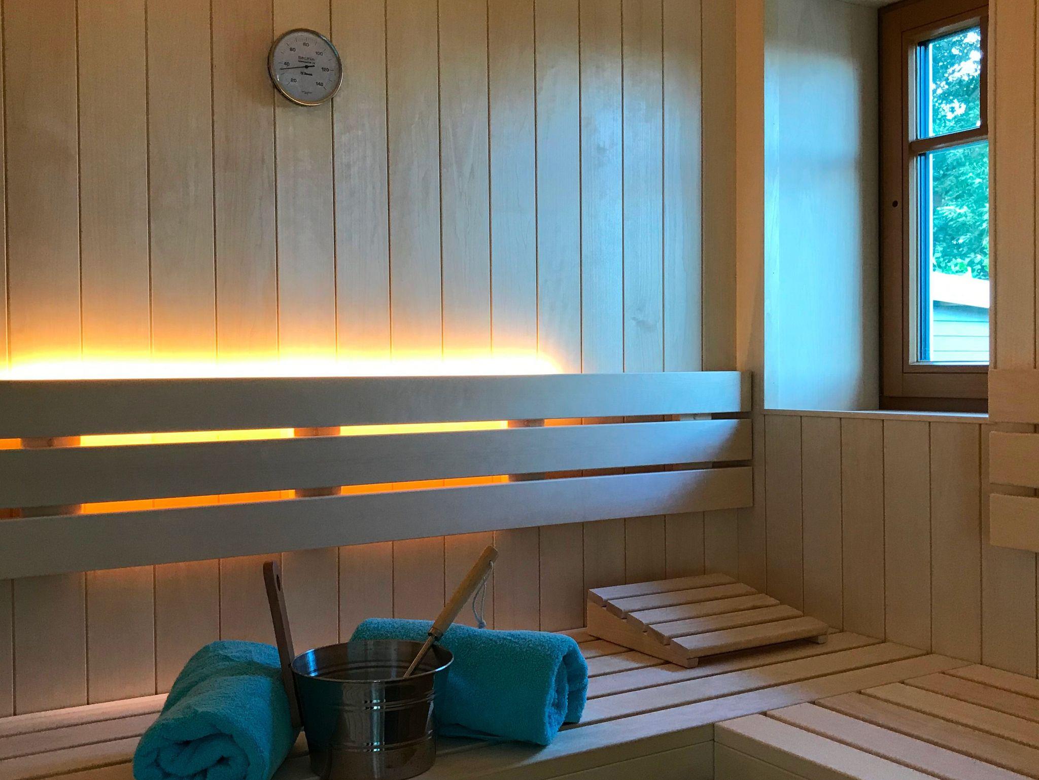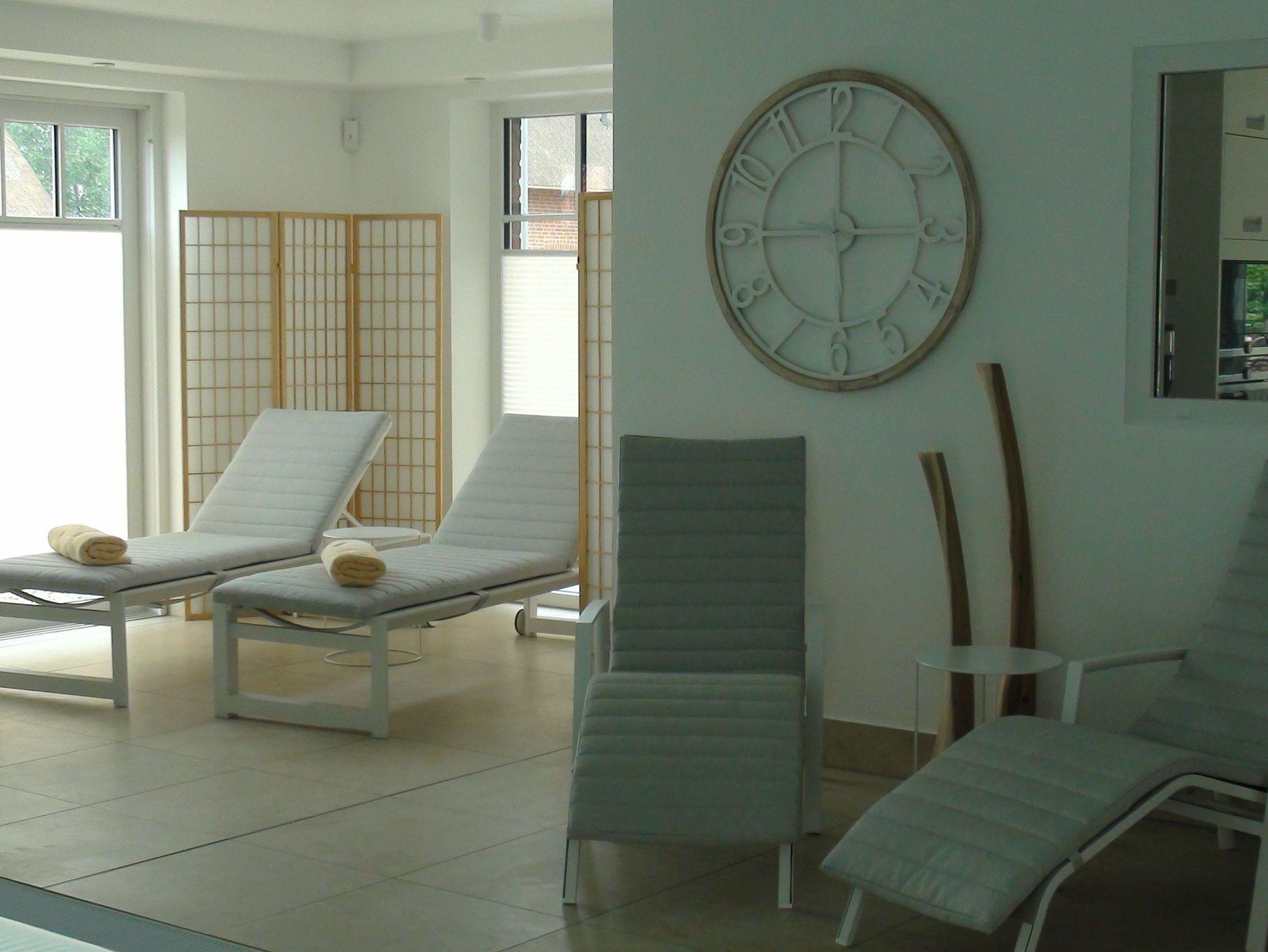 Im Wellnessbereich befinden zusätzlich eine Sauna mit Kneippdusche, sowie ein Liegebereich mit 4 Liegen.