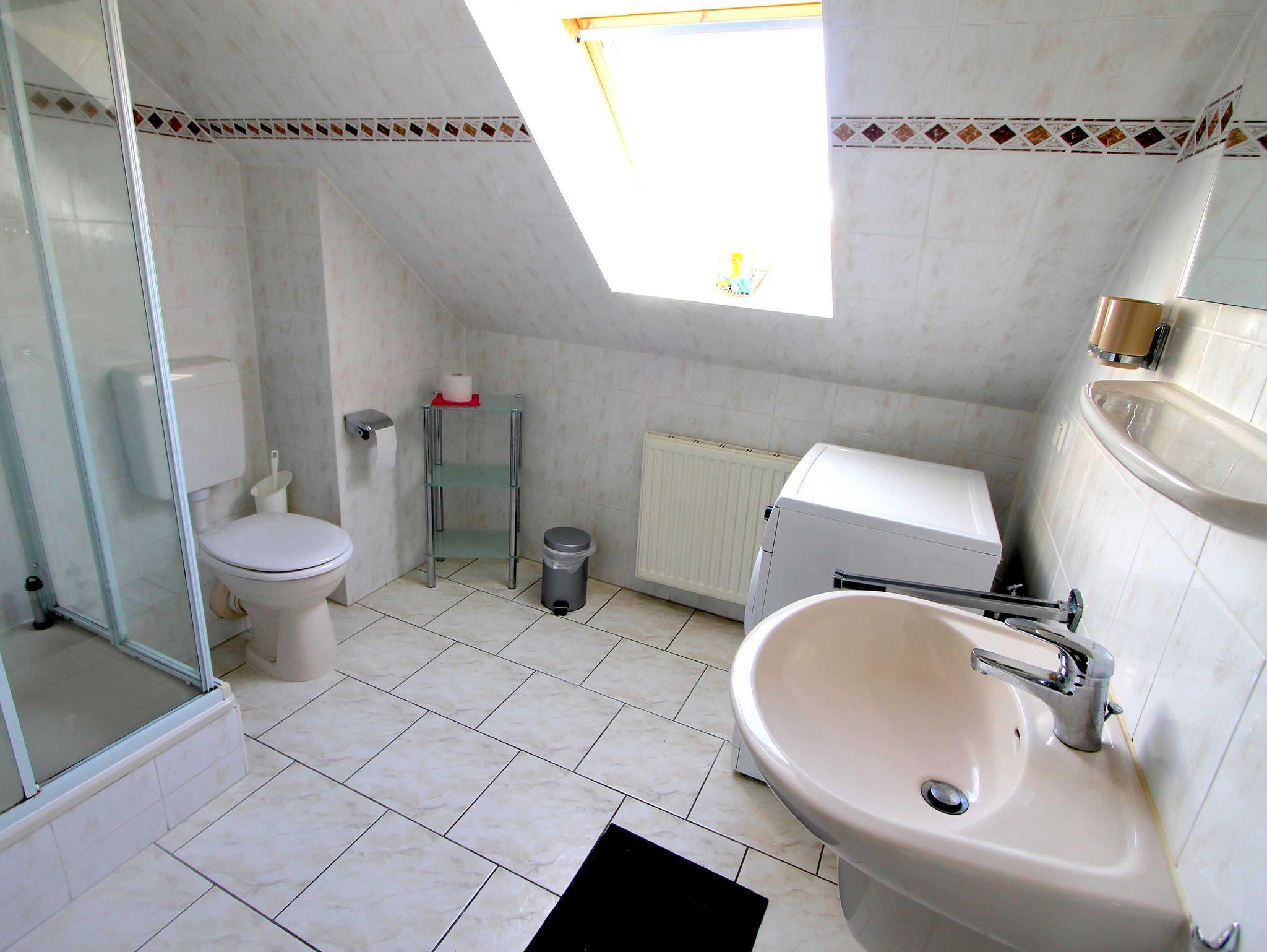 Ebenfalls im Obergeschoss befindet sich das Badezimmer mit Dusche, WC.