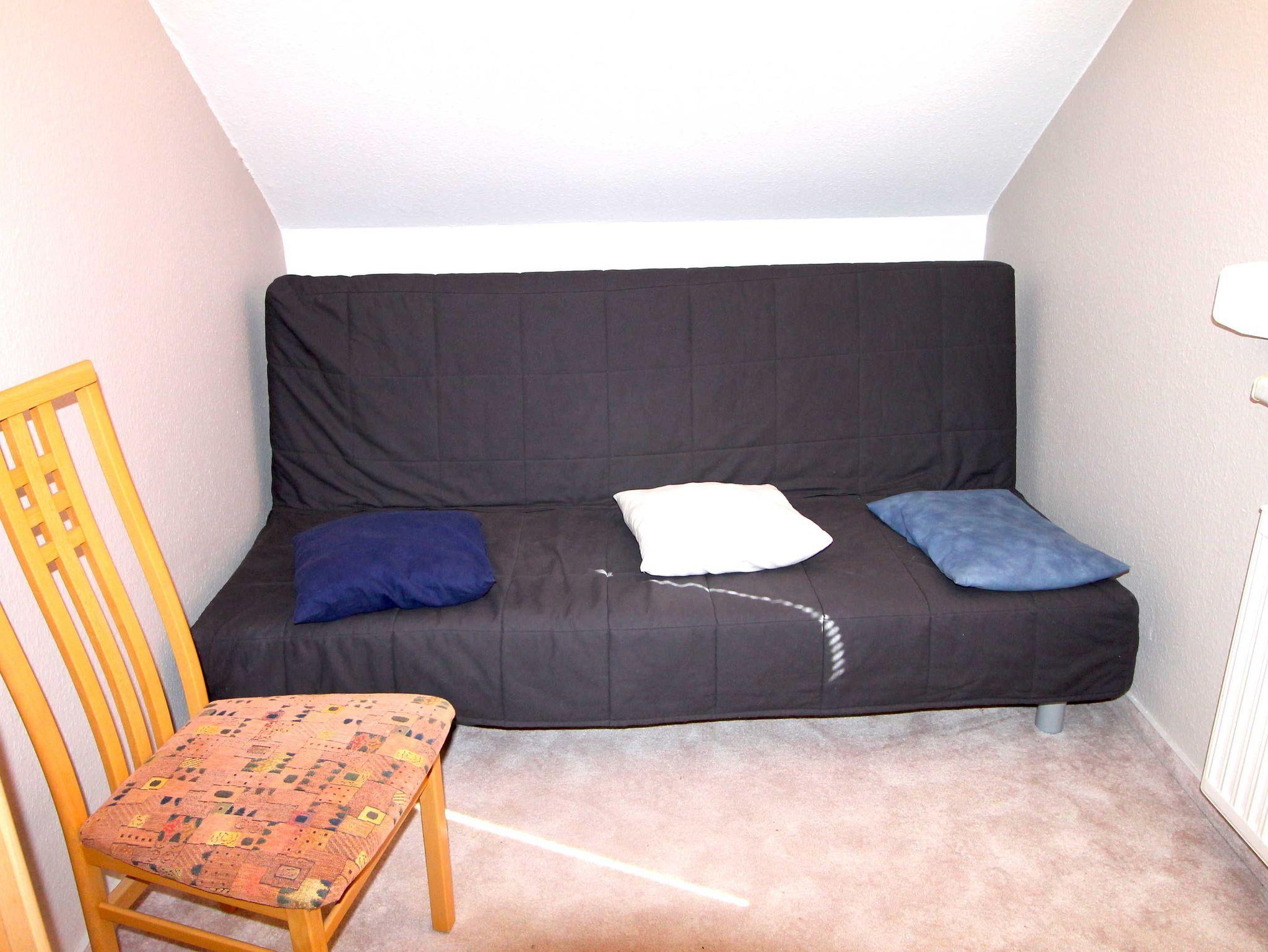 Das Ferienhaus verfügt über zwei separate Schlafzimmer im Obergeschoss ( 1 x Doppelbett sowie 1 Einzelbett und 1 Futonbett ).