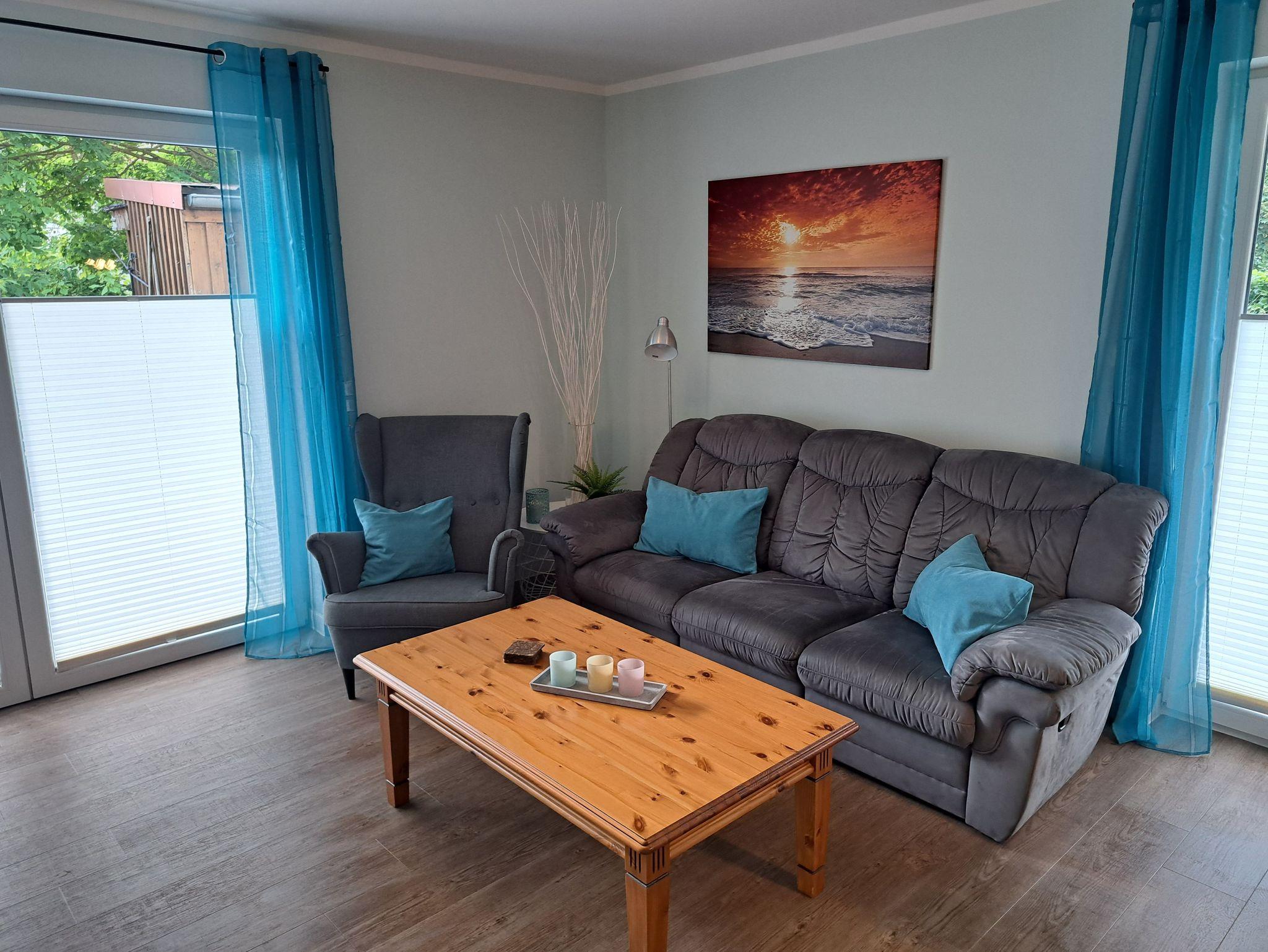 Unsere 84m² große, gemütliche Ferienwohnung im maritimen Landhausstil mit exklusiver Ausstattung befindet sich im Erdgeschoss mit eigenem Auto Stellplatz direkt vor der Haustür. Die Ferienwohnung verfügt über einen großzügigen Wohnbereich mit integrierter exklusiver Küchenzeile sowie einem komfortablen Essplatz. Insgesamt 2 Terrassen und ein eigener kleiner Garten umgeben von Obstbäumen laden zum Relaxen ein. Sie finden bei uns zwei helle, geräumige Schlafzimmer (u.a. mit hochwertigem Boxspringbett), die Platz für 2 bis maximal 5 Personen bieten. Unser großzügiges Badezimmer verfügt über eine ebenerdige große Dusche, eine Badewanne und ein WC. Für die kleinen Gäste ist ein Kinderbett, Kinderstuhl und separates Kindergeschirr vorhanden. Ein Hund darf auch mitkommen.