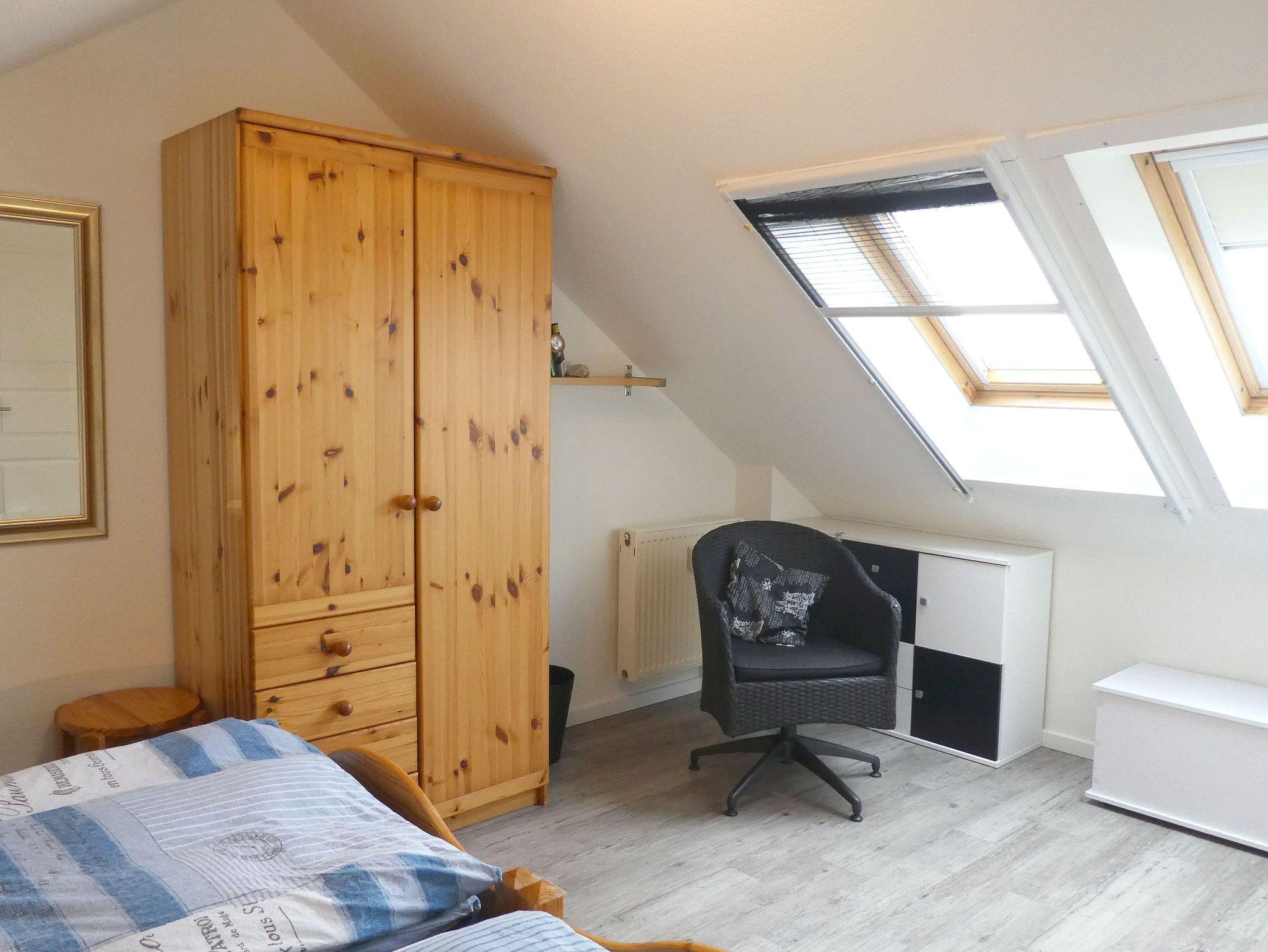 Das untere Schlafzimmer ist mit 1 Doppelbett (180 x 200), das obere mit 2 Einzelbetten ausgestattet.