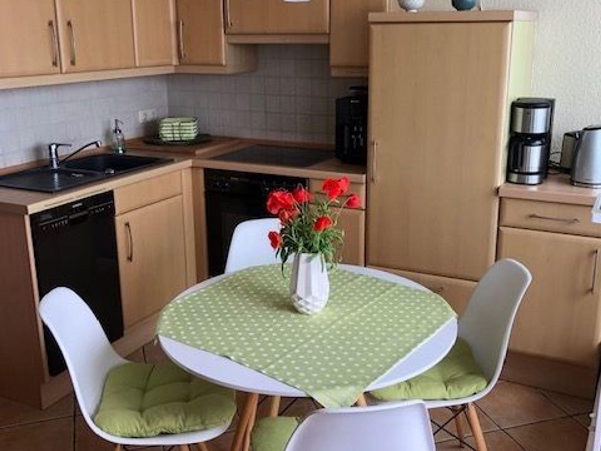 Die voll ausgestattete Küche läßt keine Wünsche offen. Sie verfügt über einen Geschirrspüler, Backofen mit Ceranfeld (4 Kochzonen), genügend Geschirr, Kaffeemaschine und Kaffeepadmaschine, etc….