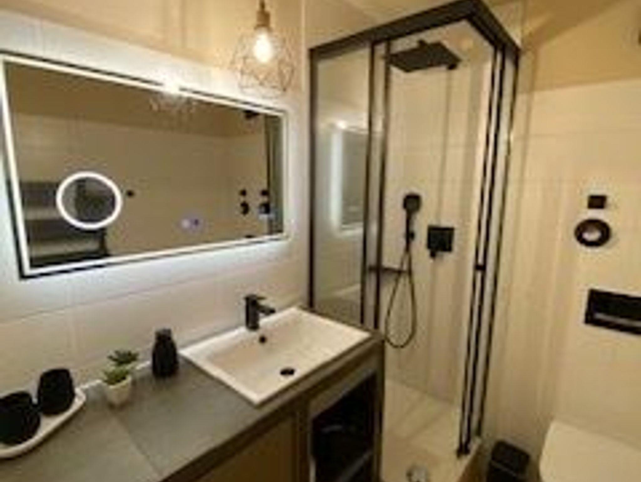 Als Highlight im Wohnzimmer steht Ihnen ein 55 Zoll Fernseher und eine Sonoro Musikanlage zur Verfügung. Des Weiteren bietet Ihnen die Wohnung zwei ruhige Schlafzimmer und ein helles Duschbad. Die Wohnung ist auf maximal 3 Personen ausgerichtet und befindet sich in der ersten Etage.