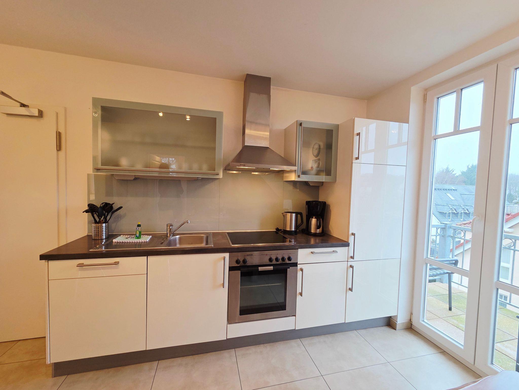 Die gut ausgestattete Küche lädt zum Kochen ein. Und der frisch aufgebrühte Kaffee kann wunderbar draußen genossen werden: von der Küche haben Sie Zugang auf den kleineren der beiden Balkone.