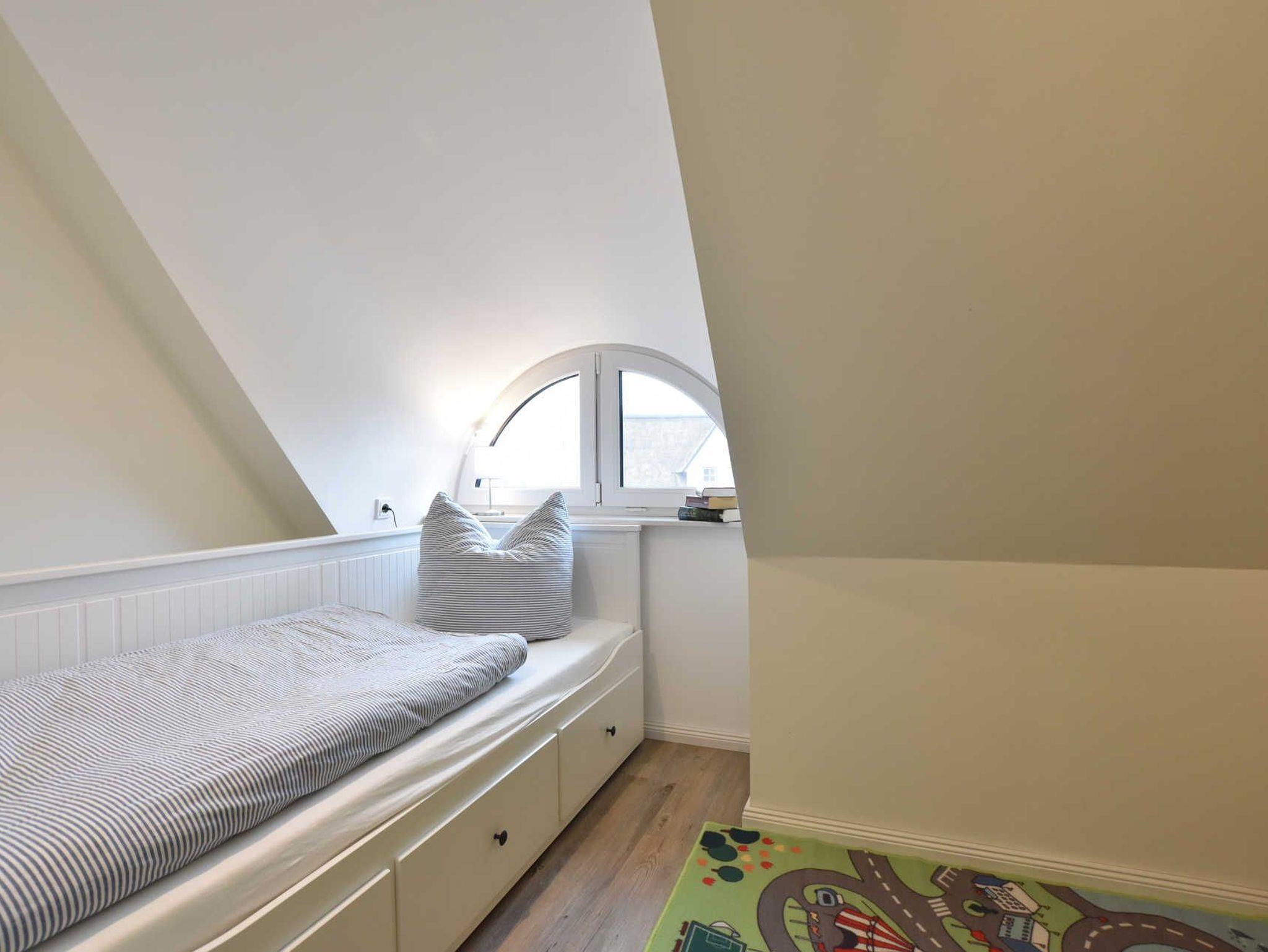 Im Obergeschoss insgesamt 5 Schlafräume, Babybett aufstellbar. Davon Schlafraum 2 und 3 mit Doppelbett & TV. Schlafraum 4 und 5 mit 2 Einzelbetten. Schlafraum 6 mit 1 Einzelbett.