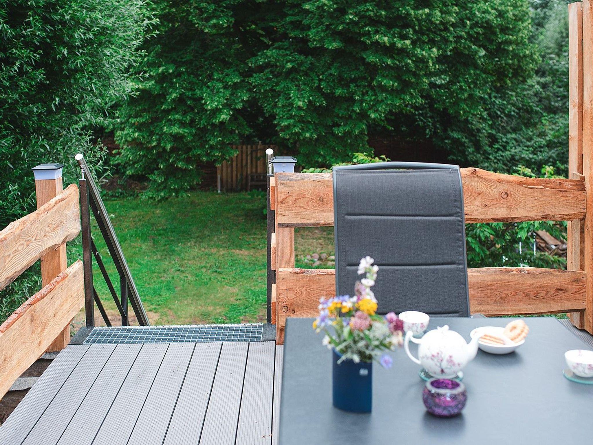 Auf Grund der Lage und Einrichtung der Wohnung (Dachterrasse, Treppe, Teich) ist unsere Wohnung nicht für kleine Kinder geeignet.