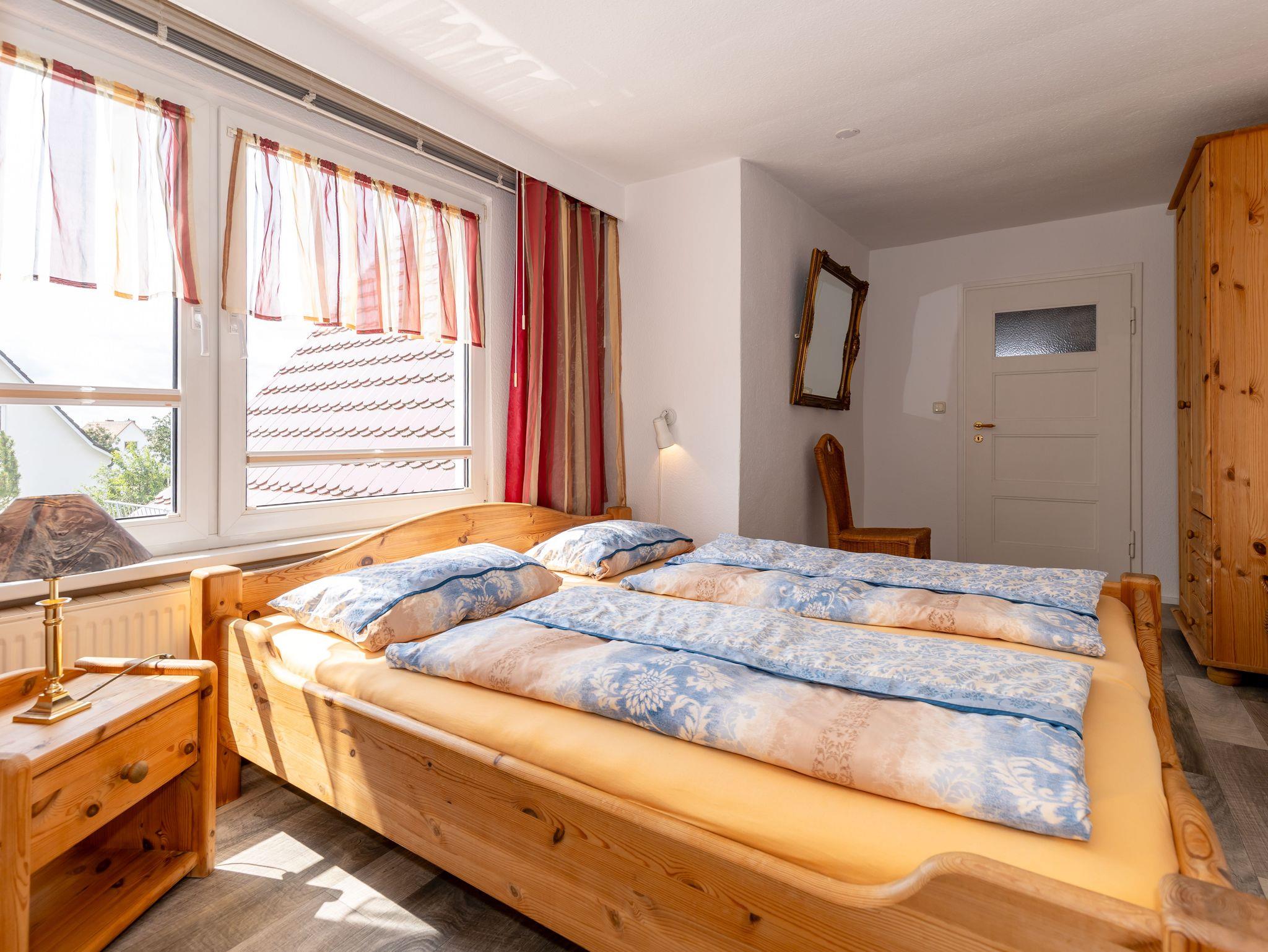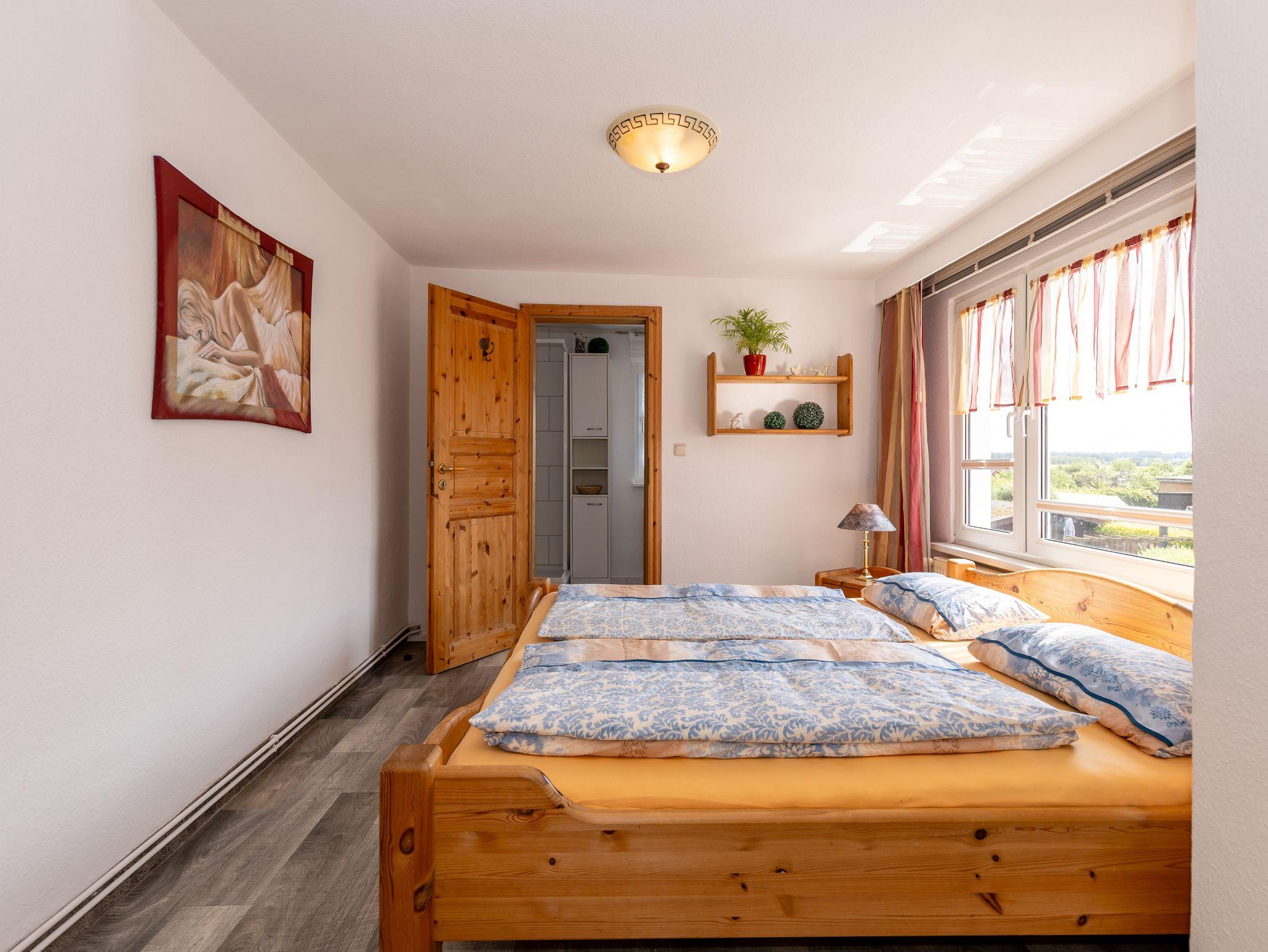 Die Ferienwohnung befindet sich im Obergeschoss einer Doppelhaushälfte. Auf ca. 50qm erwarten Sie für 1-2 Personen ein großzügiges Wohnzimmer, ein Schlafzimmer, eine separate Küche und ein Bad. Die Sonne können Sie bereits morgens beim Erwachen genießen und am Abend mit ihr den Tag verabschieden.