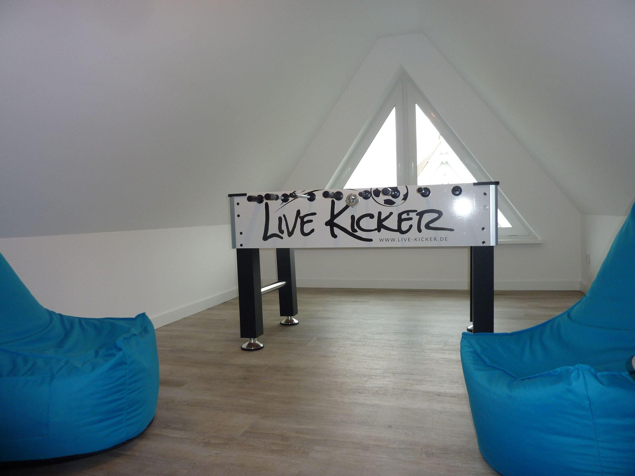 - großer Kicker und Sitzsäcke im Spitzboden mit Kompaktgerät zum Abspielen von Musik (Radio, CD-Player, USB-Anschluss,...)