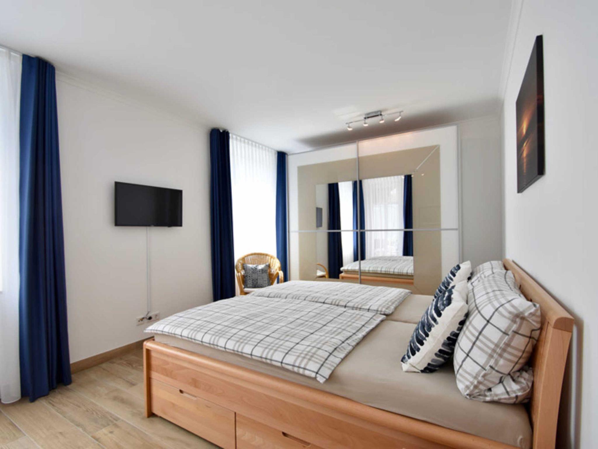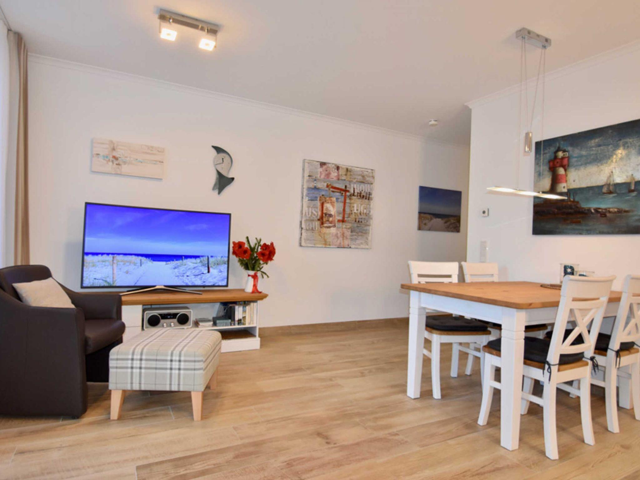 Bei der Ferienwohnung Stella handelt es sich um eine exklusive eingerichtete Ferienwohnung auf großzügigen 64 qm im Erdgeschoss der VillaStrandEIns. Zwei Terrassen und Rasenflächen stehen zur alleinigen Nutzung bereit. Vor dem geschmackvoll und bequem eingerichtetem Wohn-/Essbereich liegt die Terrasse und Rasenfläche im Süd/Ost Richtung. Das bequeme Schlafsofa (1,6x2m) ist für 2 Personen geeignet. Die großzügige offene Küche ist mit allem technischen Komfort (Kühl-/Gefrierschrank, Geschirrspüler, Backofen, Induktionskochfeld, Mikrowelle) ausgestattet. Auch Kaffeemaschine, Toaster, Wasserkocher, Handrührgerät und Stabmixer sind vorhanden. Das Schlafzimmer ist mit einem Doppelbett in Komforthöhe (1,8x2,0m), einem großen Kleiderschrank und ein TV-Gerät ausgestattet. Hier haben Sie den Zugang zu der zweiten Terrasse und Rasenfläche im Süd/West Richtung. Das luxuriöse Bad ist mit einer großen, bodengleichen Dusche, einen Waschtisch aus Granit, einen Unterbauschrank, Handtuchwärmer und Fön ausgestattet.Bettwäsche und Handtücher sind für 2 Personen im Mietpreis enthalten. Eine Waschmaschine und Wäschetrockner sind im Gemeinschaftsraum vorhanden. Bügeleisen und Bügelbrett stehen in der Wohnung bereit.