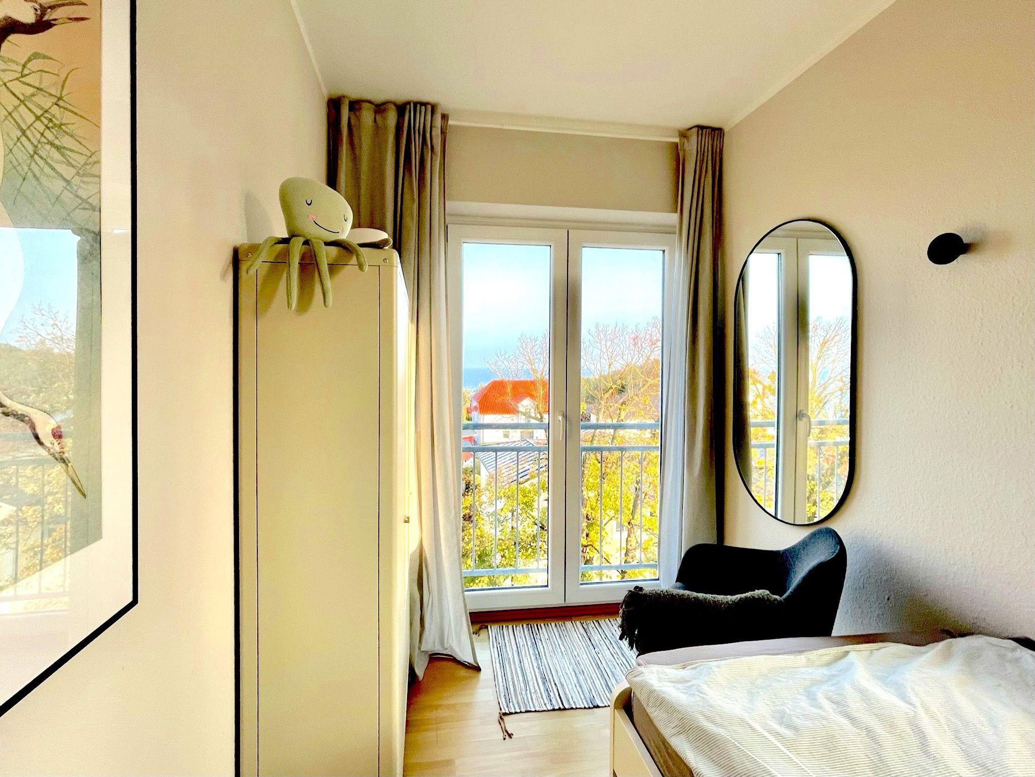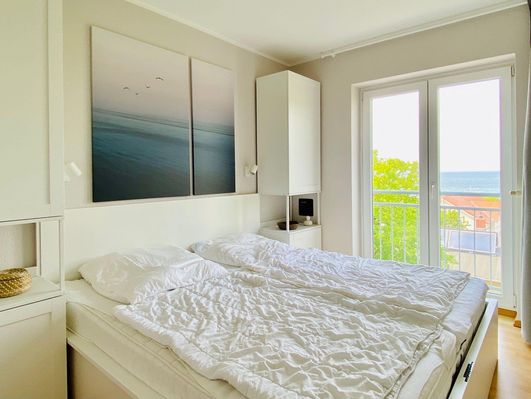 Der Blick auf die Ostsee und das Haff ist in dieser lichtdurchfluteten 3-Zimmer Wohnung einzigartig. Im Haus findet ihr ein Schwimmbad, Solarium, Waschmaschine und Trockner. In der Wohnung, die Platz für bis zu 5 Personen bietet, findet ihr auch ein Reisebabybett mit komfortabler Matratze sowie einen Hochstuhl.