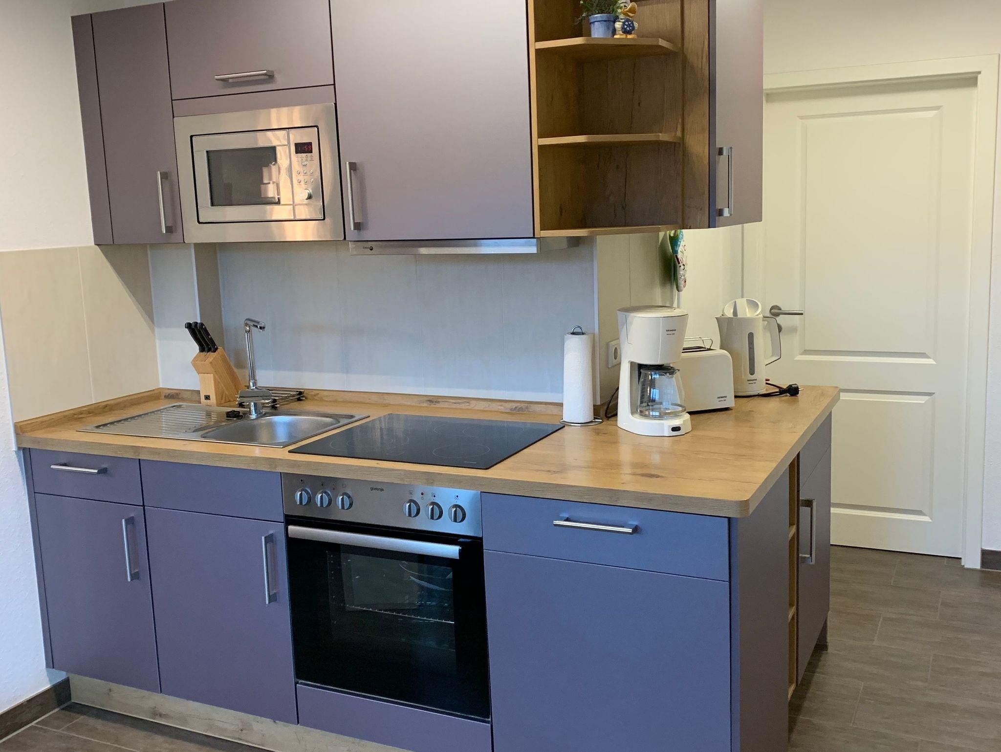 Die Ferienwohnung ist optimal geeignet für 4 Gäste + Baby auf einer Wohnfläche von 52m². Sie ist ausgestattet mit Fußbodenheizung, Wohn-Esszimmer mit voll ausgestatteterKüchenzeile, 2 Schlafzimmer, Abstellraum mit Waschmaschine (kostenfrei)