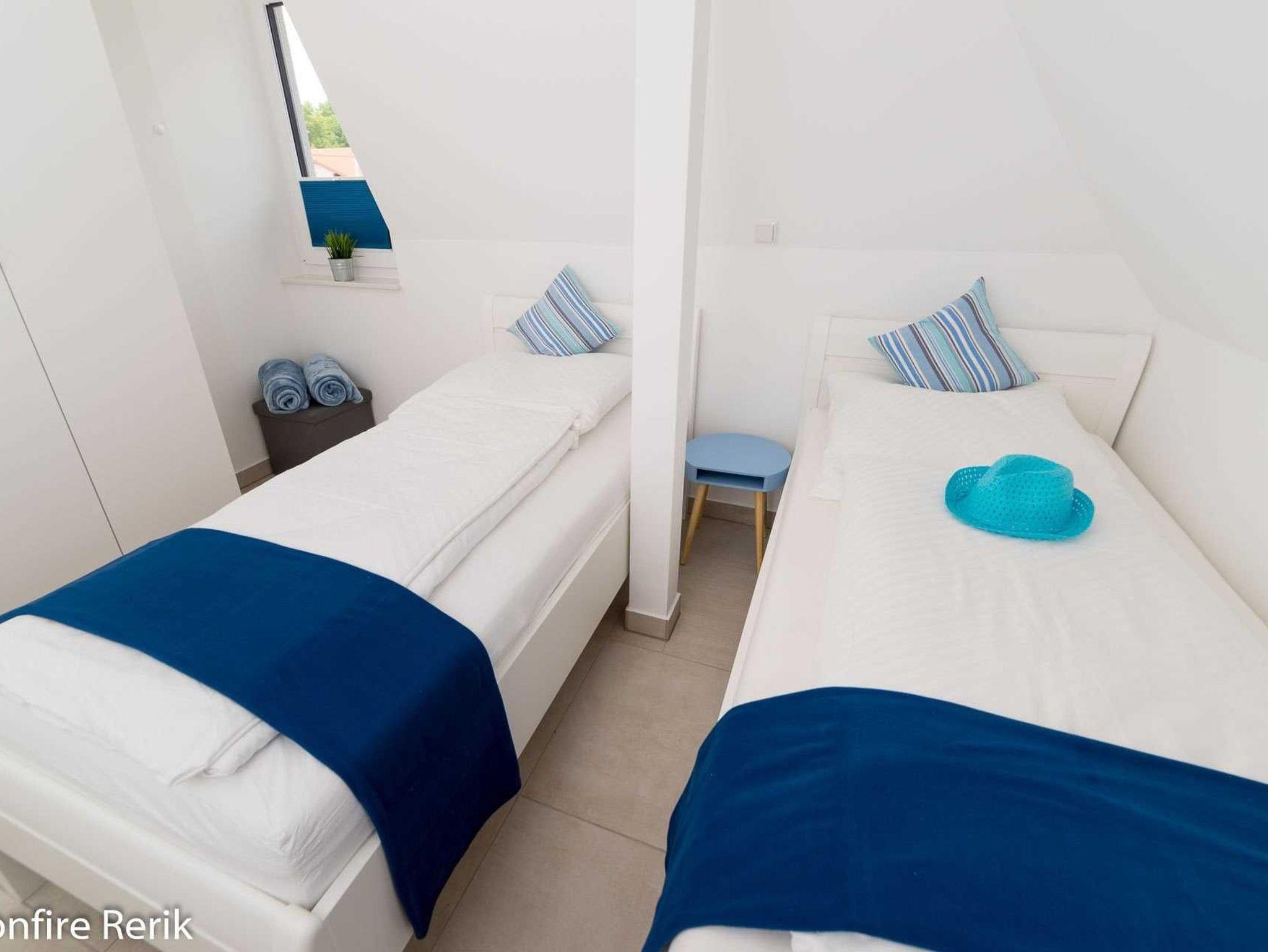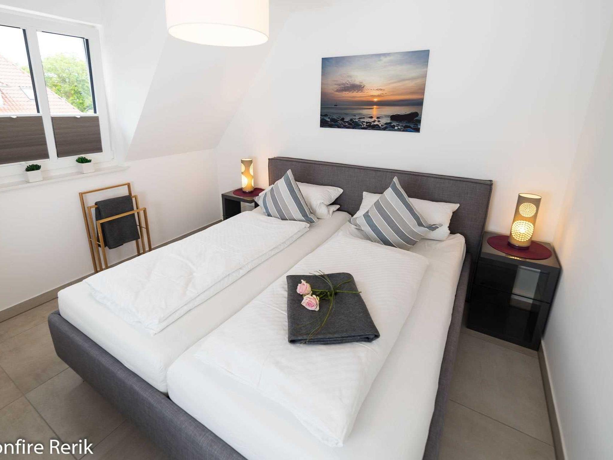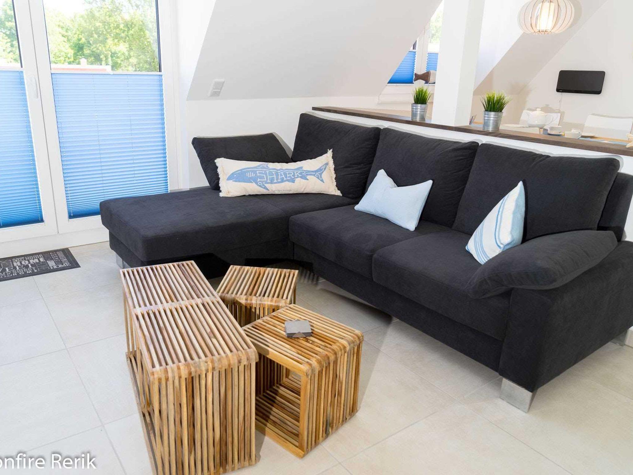 Über den Dächern Reriks, im Obergeschoss des Hauses Blinkfüer, befindet sich Ihr Urlaubs-Domizil. Die Maisonette-Ferienwohnung „Bonfire“ ist sehr großzügig und offen geschnitten, sowie maritim und sehr modern eingerichtet. Im offenen Wohnraum mit viel natürlichem Licht und über 5 Meter Raumhöhe finden Sie eine vollausgestattete Küche, einen großzügigen Essplatz und eine gemütliche Couchecke. In zwei Schlafzimmern plus Galerie können 1-5 Personen (und ein Kleinkind im Reisebett) erholsam schlafen. Alle Betten bieten Komforthöhe und besitzen hochwertige Matratzen, Kissen und Decken.