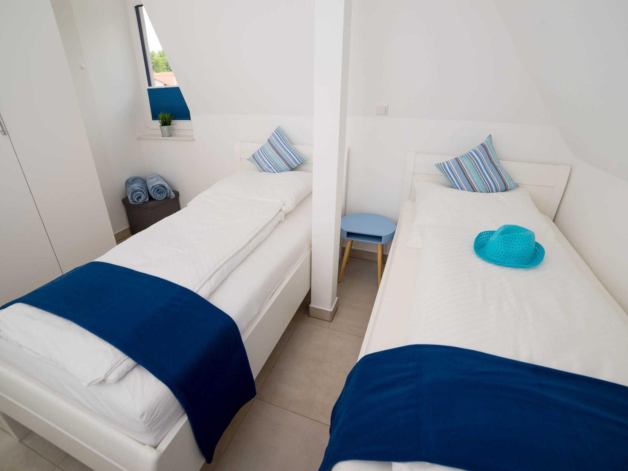 In zwei Schlafzimmern plus Galerie können 1-5 Personen (und ein Kleinkind im Reisebett) erholsam schlafen. Alle Betten sind in Komforthöhe und mit hochwertigen Matratzen, Kissen und Decken ausgestattet.