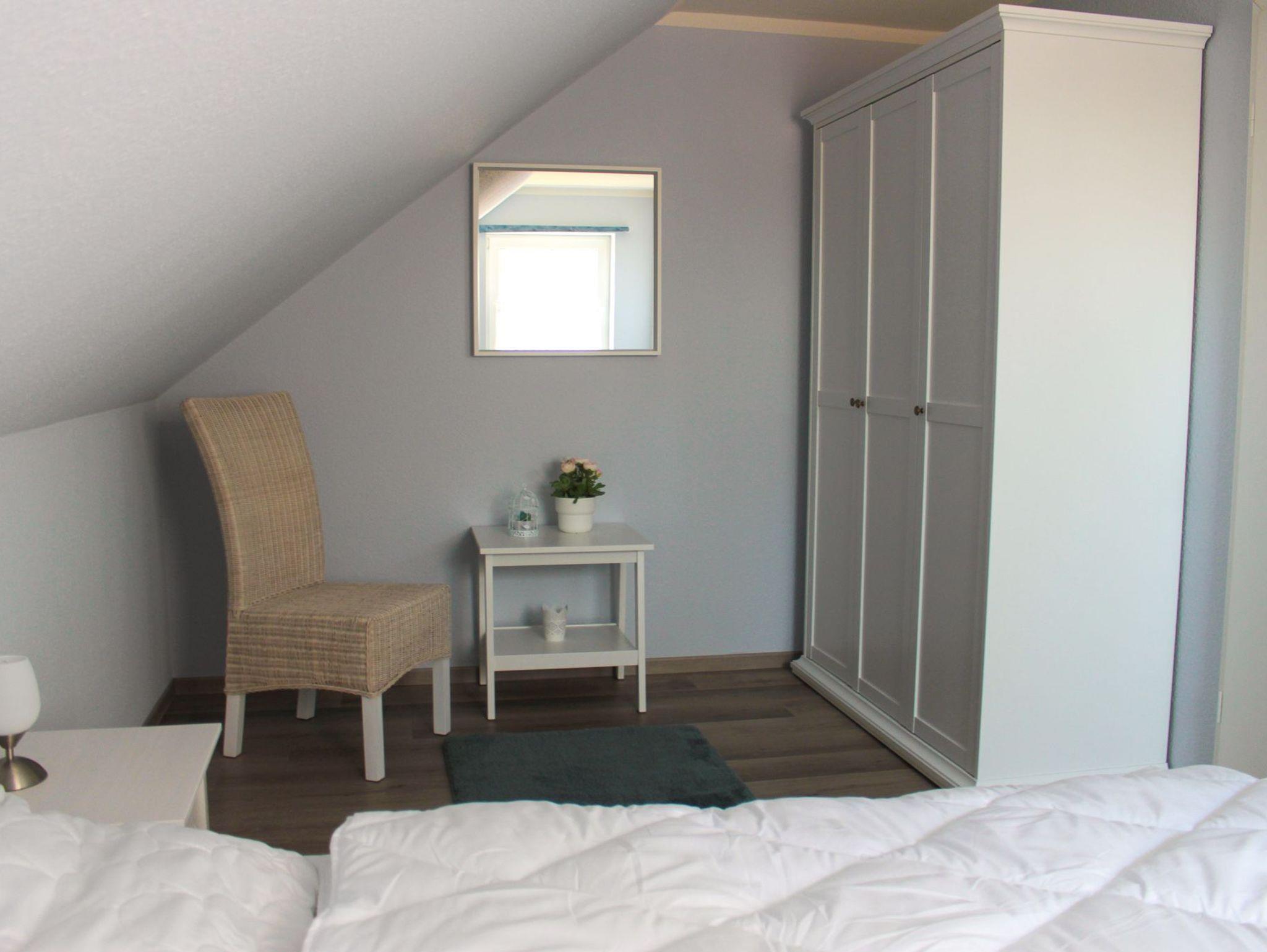 In dem Ferienhaus Ferienglück, gibt es zwei Schlafzimmer mit einem Doppelbett ( 180x200 cm) und zwei Einzelbetten (90x200 cm), im OG befindet sich ein Badezimmer mit Dusche und WC.
