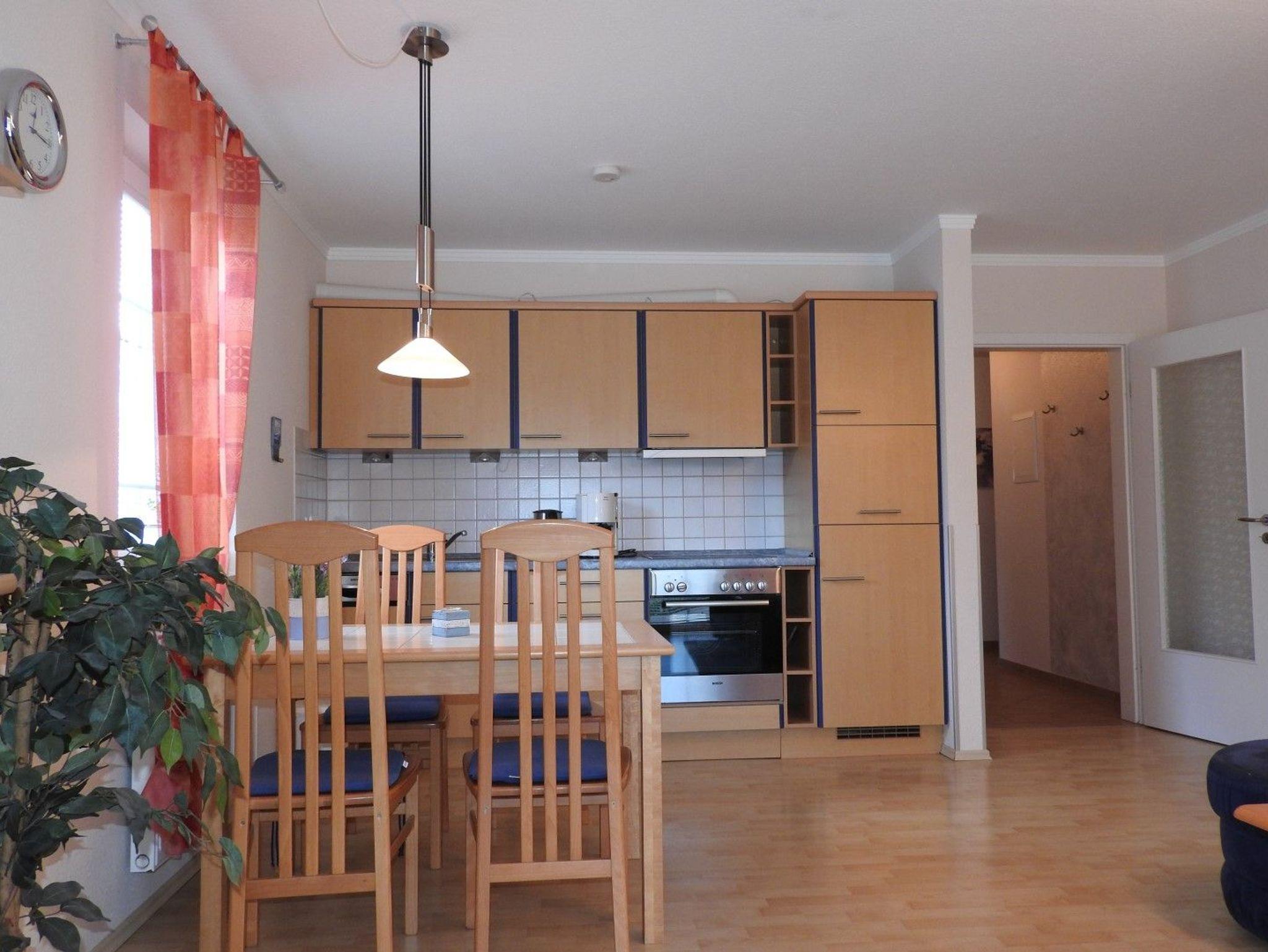 Sehr gemütlich eingerichtete Ferienwohnung mit Westterrasse, Parkplatz am Haus.Die Wohnung hat ein Wohnzimmer mit Einbauküche,Spülmaschine, Microwelle, ein Schlafzimmer, ein Kinderzimmer mit Etagenbett, ein Bad mit Dusche. Es ist ein Kinderreisebett, Waschvollautomat, Trockner, Fernseher, DVD und Musikanlage vorhanden.
