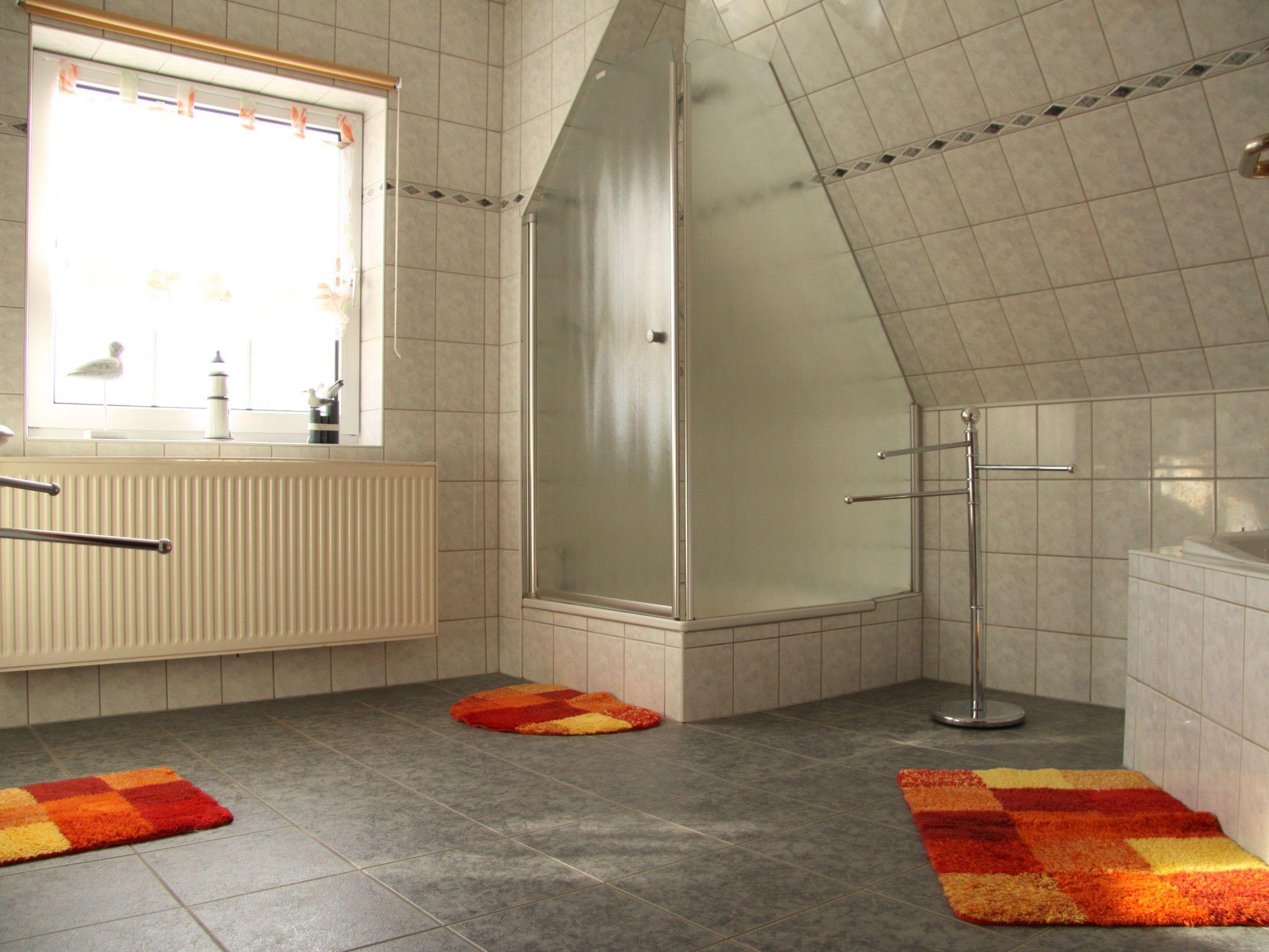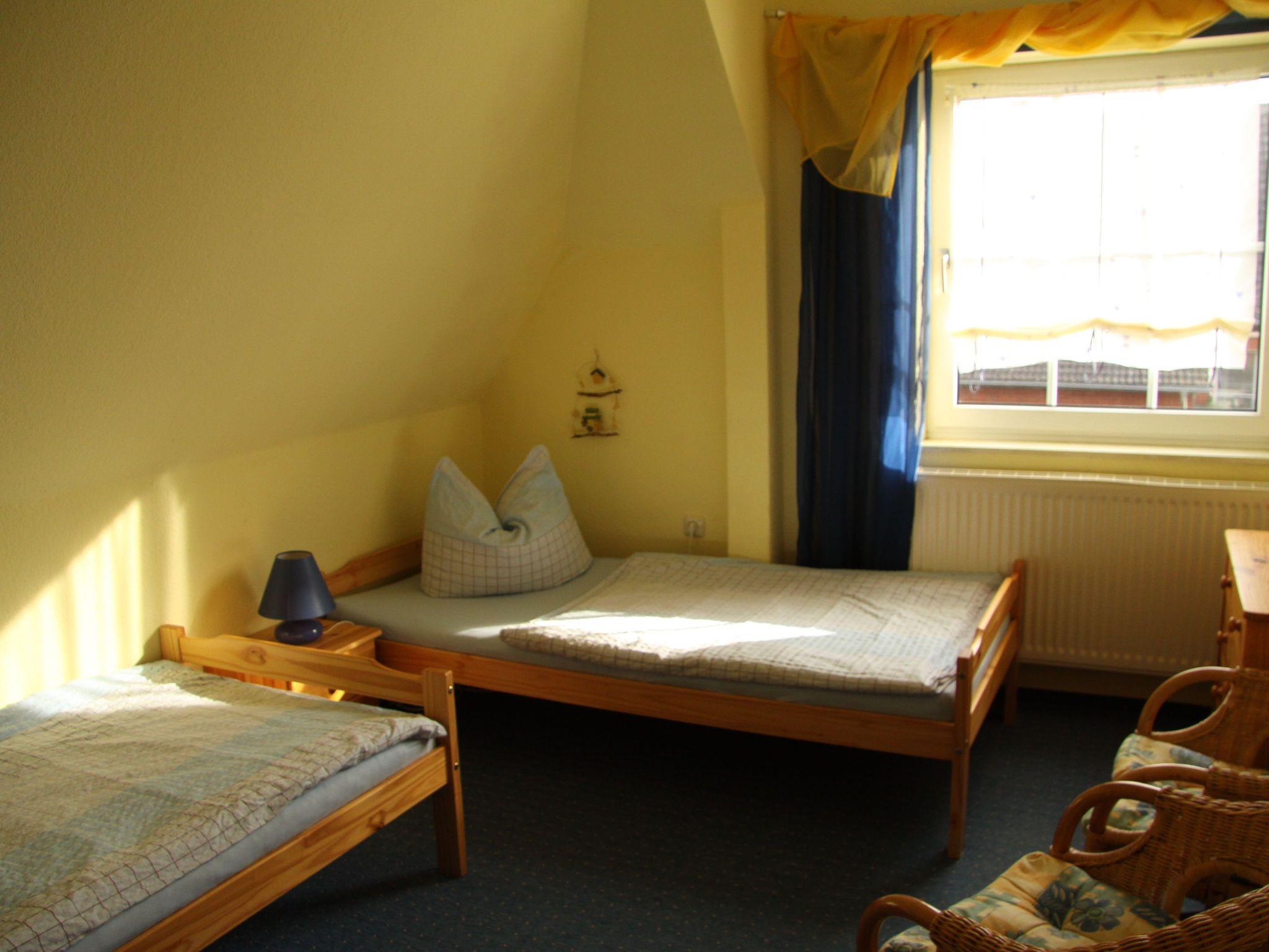 Ferienwohnung über zwei Etagen (1. Et.+ 2. Et.), 3 Schlafzimmer (bis 6 Pers. + Kinderbett/-stuhl), Wohnzimmer mit TV und Radio, große Küche mit Geschirrsp. + Gefrierschrank, Dusche/Badewanne, sep. WC, 2 Balkone, 1 min. z. Strandabgang! Parkplatz auf dem Gründstück!