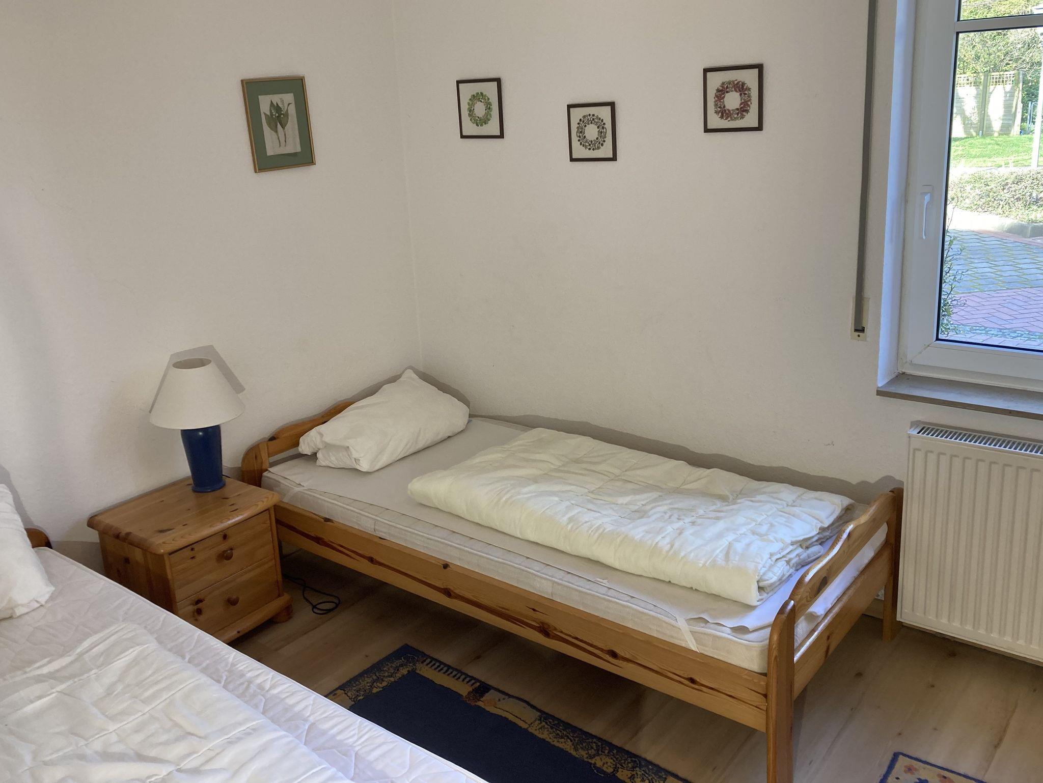 3-Zimmer Komfort-Ferienwohnung 63qm im Erdgeschoß mit Terrasse zur Südseite (mit Tisch und Stühlen), 1 gr. EWZ mit komplett eingerichteter Küche, 1 Schlafz. mit Doppelbett, 1 Schlafzimmer mit 2 Einzelbetten, 1 DU/WC, 1 WC, Kinderbett und -hochstuhl, eigenes kostenfreies WLAN. Damit Sie es sich richtig gutgehen lassen können, haben wir die Betten bezogen und Ihnen Handtücher hingelegt.