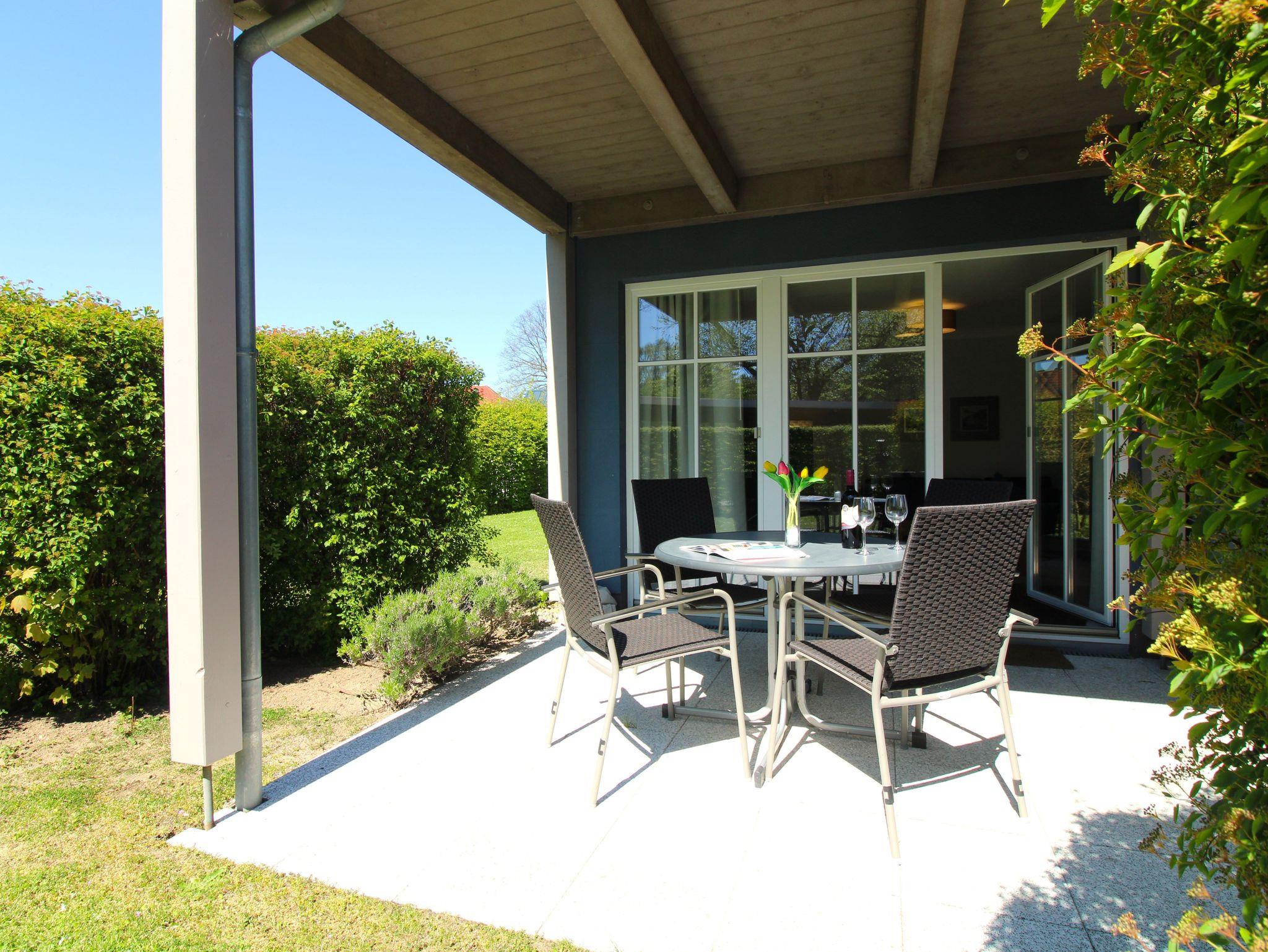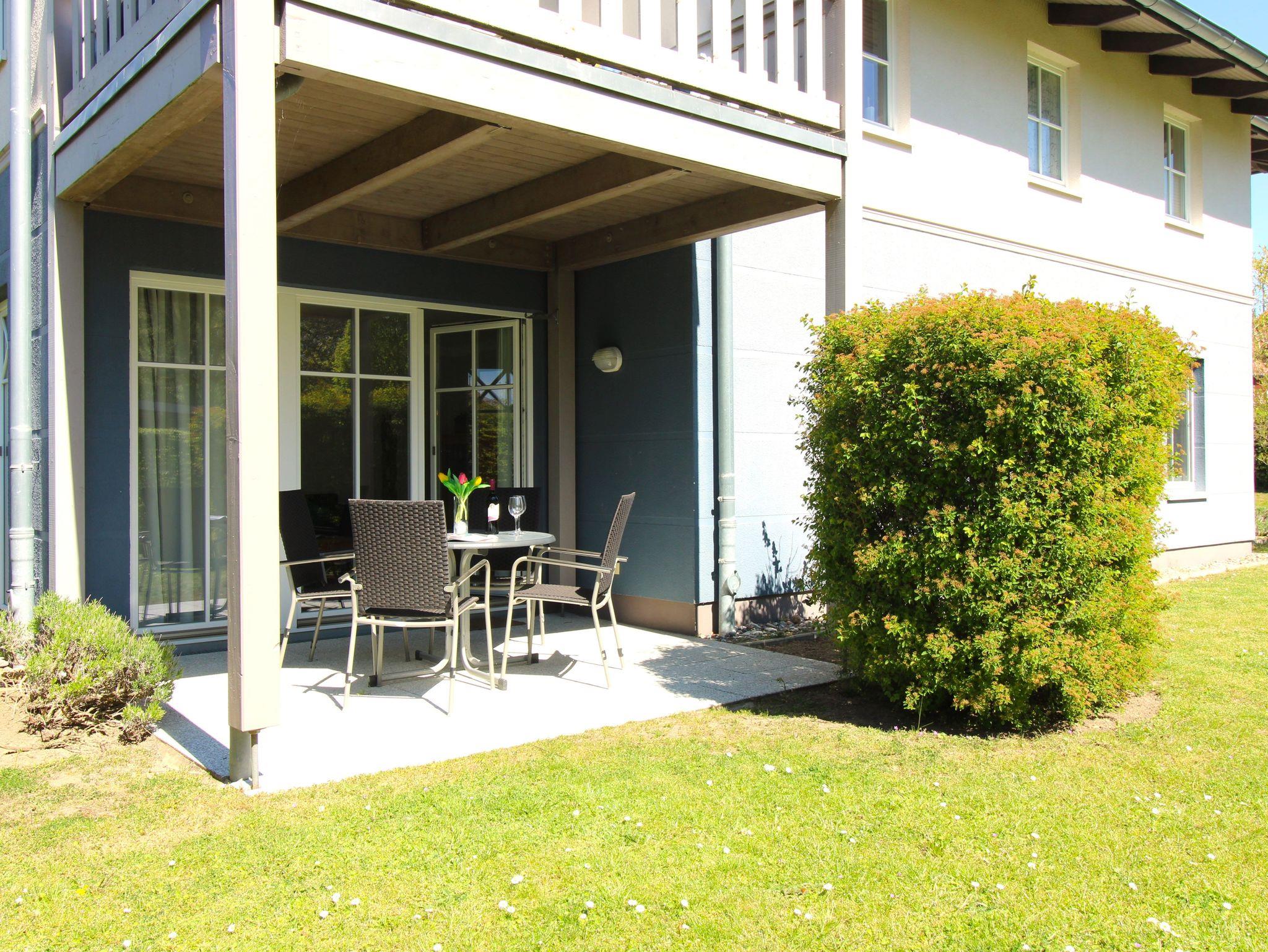 Auf der Südterrasse steht eine gemütliche Sitzgruppe zum Frühstücken oder entspannen bereit.