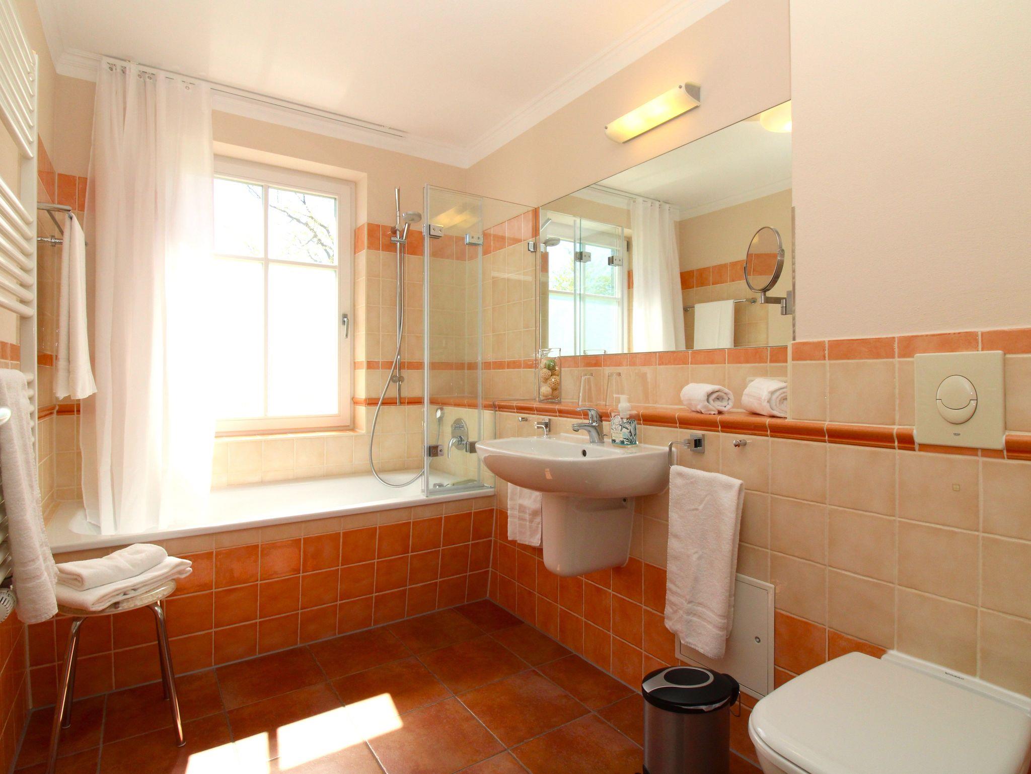 Das große Vollbad ist mit Badewanne, Dusche und WC ausgestattet.