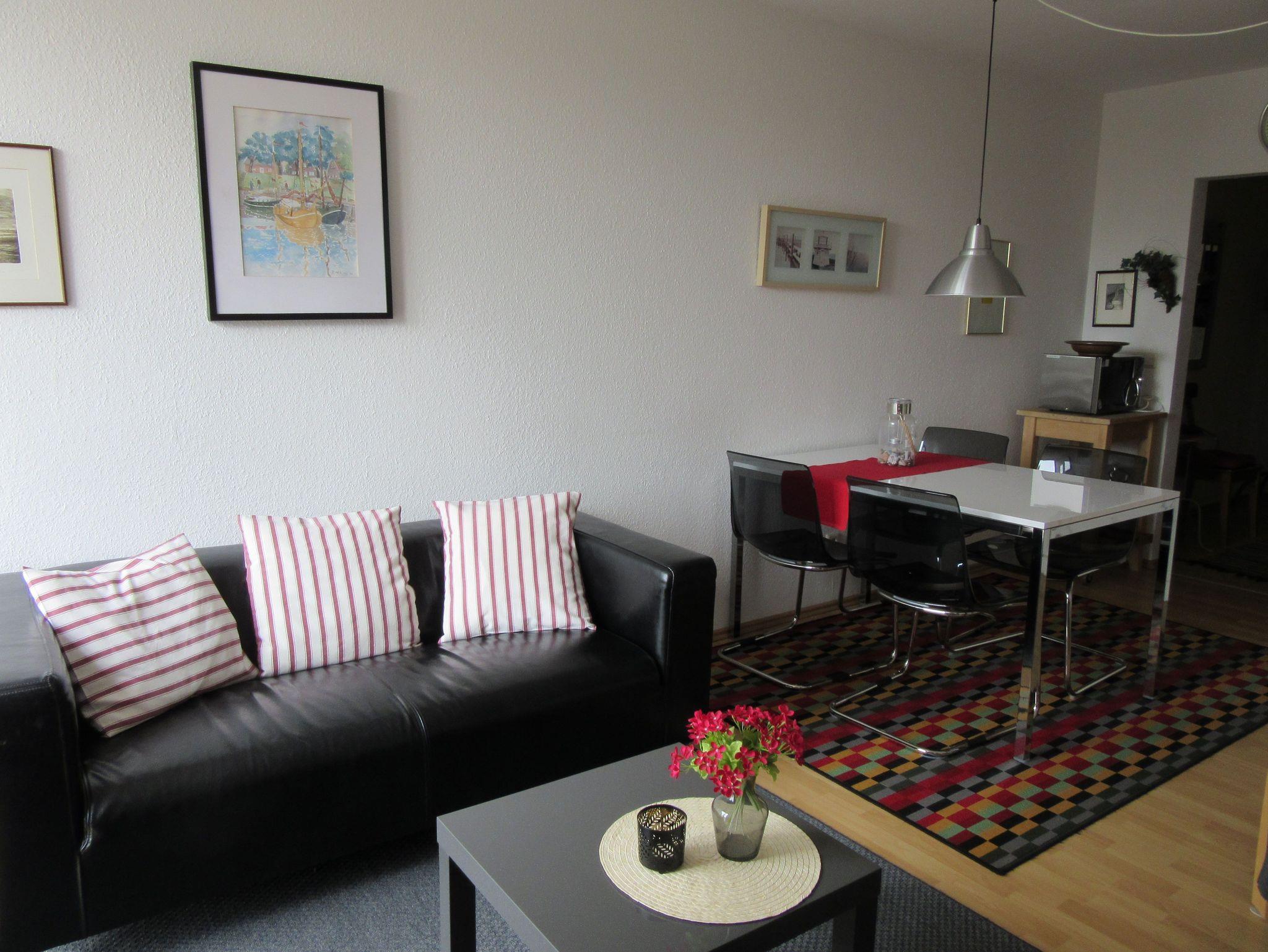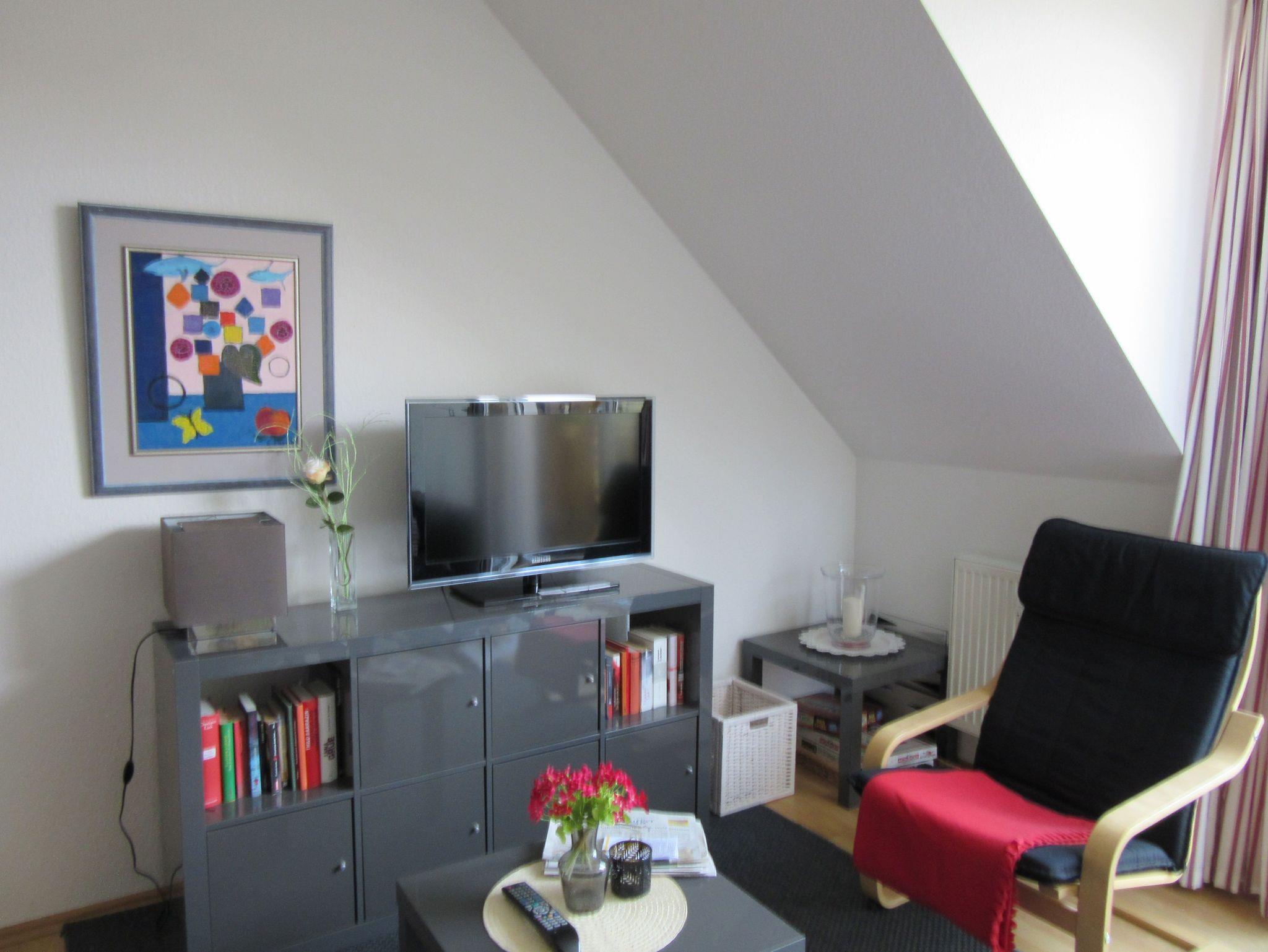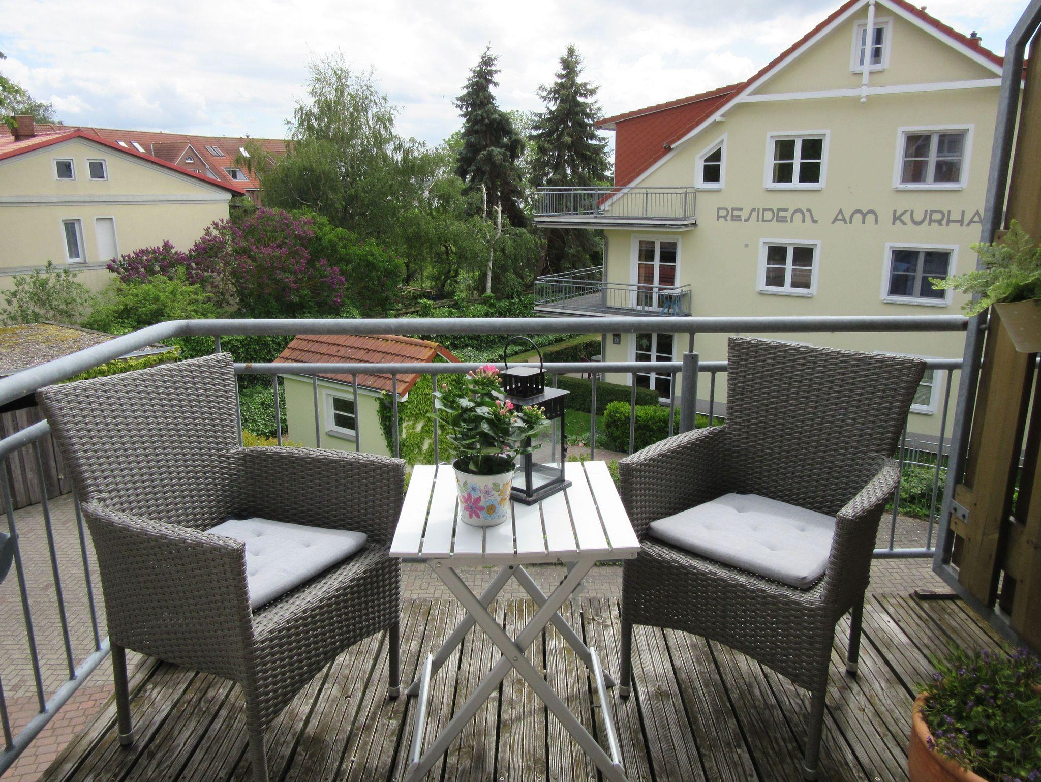 Ein Wohnzimmer mit modern ausgestatteter Küchenzeile mit Backofen und Mikrowelle und DU/WC befinden sich auf der ersten Ebene. Ein Schlafzimmer mit einem Doppelboxspringbett und ein Schlafzimmer mit zwei einzelnen Boxspringbetten liegen eine Treppe höher. Kinderbett und Hochstuhl sind vorhanden, Bettwäsche bitte mitbringen oder mieten - 20.00 Euro/Pers.,Balkon mit Blick zum Salzhaff, Tiefgaragenstellplatz inklusive, Sauna (3 x wöchentl.) und Schwimmbad im Haus und kostenfrei nutzbar, Solarium ebenfalls im Haus gegen Entgelt.