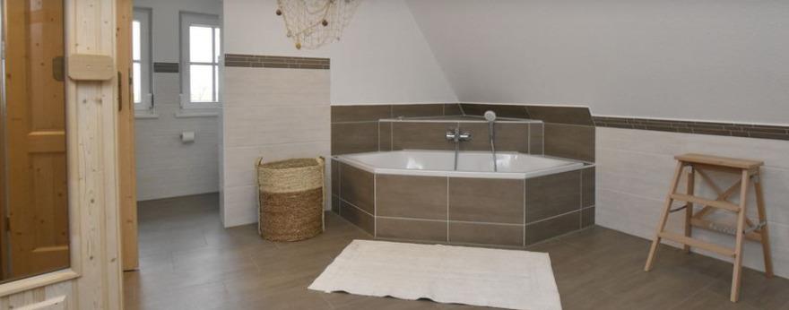 1 großes Badezimmer mit Badewanne, Sauna, Dusche / WC