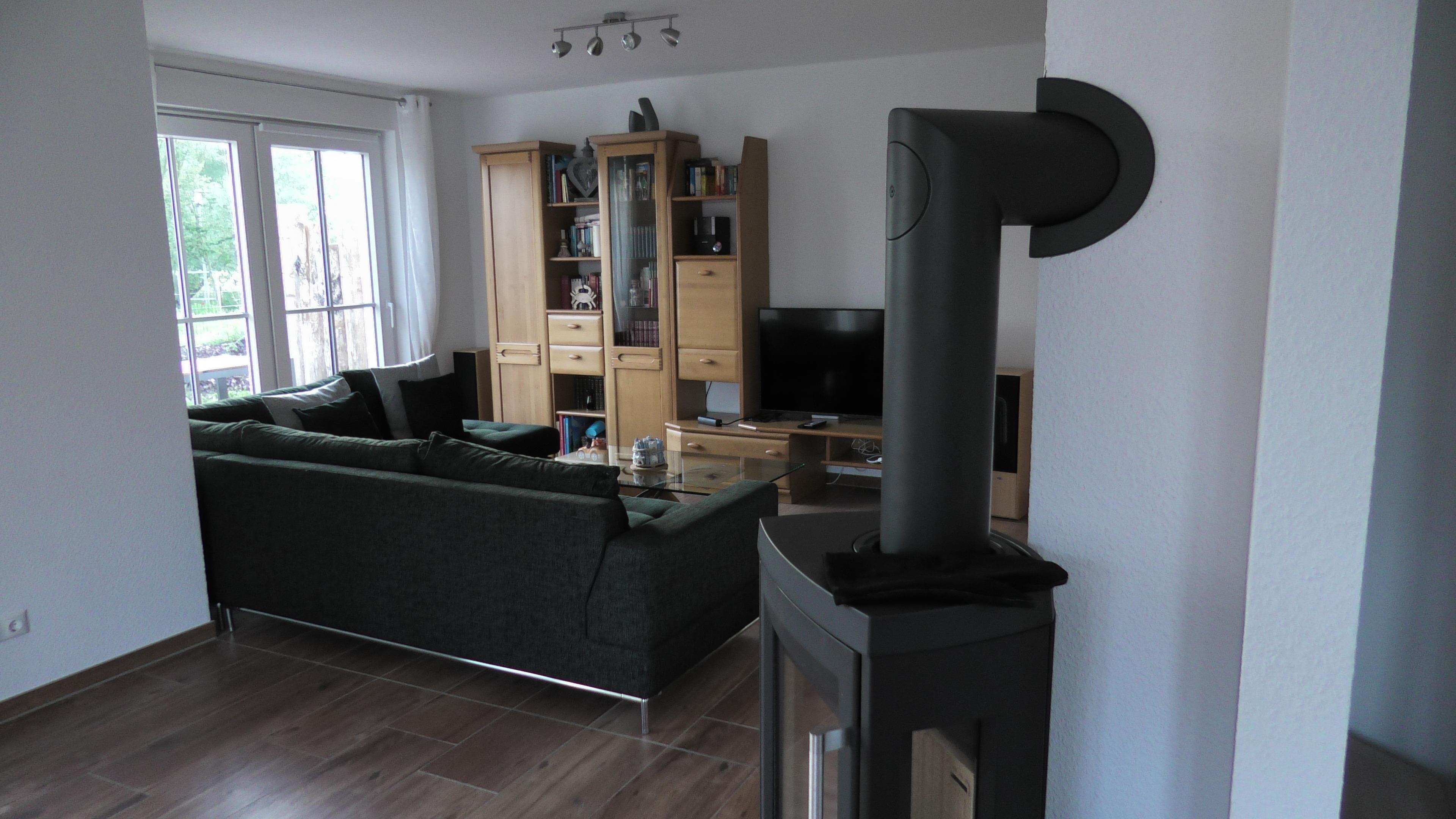 Wohnzimmer 1 TV (Flatscreen), Kamin, Ofen (Holz), Sitzecke, HiFi-Anlage, CD/DVD/Blu-ray-Spieler