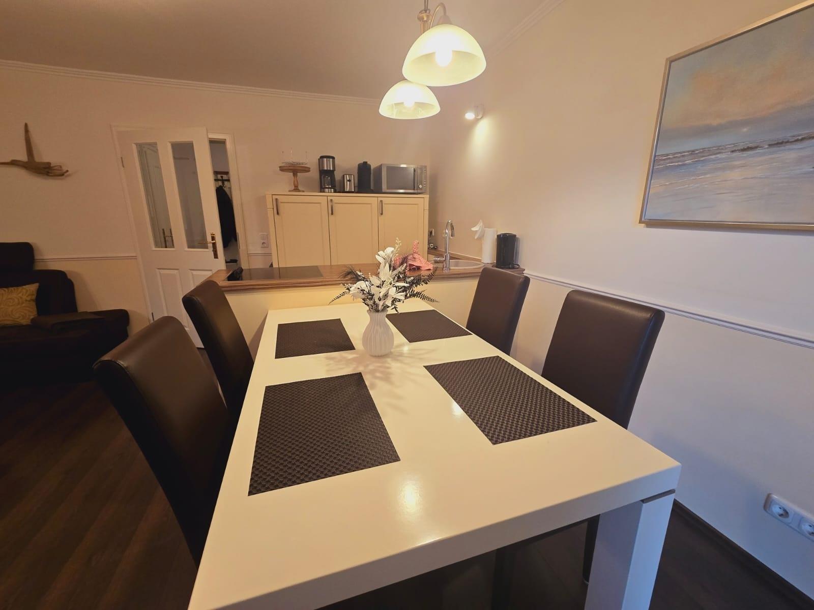 Auf der Nordseite und direkt am Wohn und Essbereich befindet sich ein geräumiger Balkon mit Blick Richtung Ostsee. Hier stehen Ihnen natürlich auch ein Tisch und Stühle zur Verfügung für ein schönes Frühstück im freien.