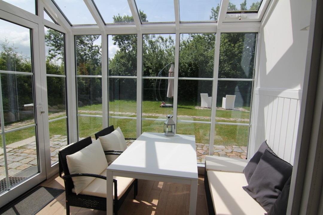 Der Wintergarten bietet einen schönen Blick ins Grüne und Zugang auf die eigene Terrasse.