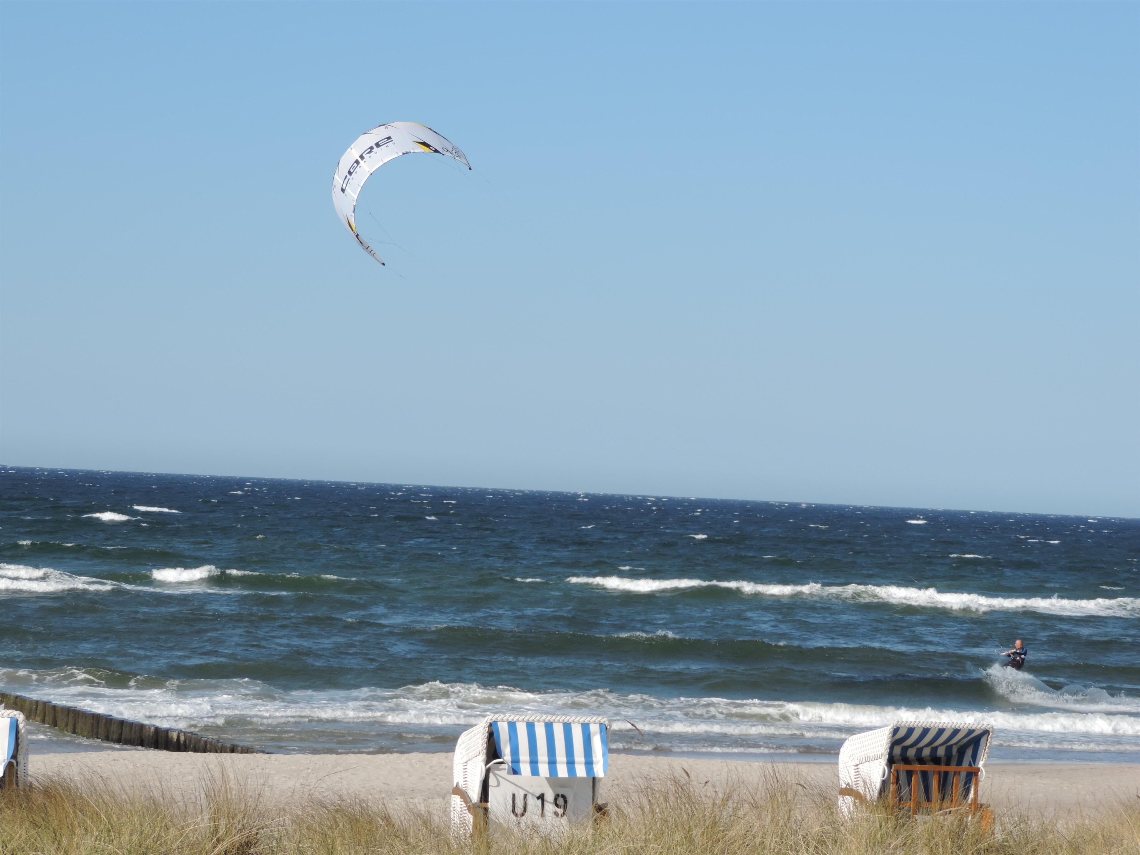 Für Anfänger bietet das Haff ideale Bedingungen. Fortgeschrittene können sich in die Brandung der Ostsee stürzen.
