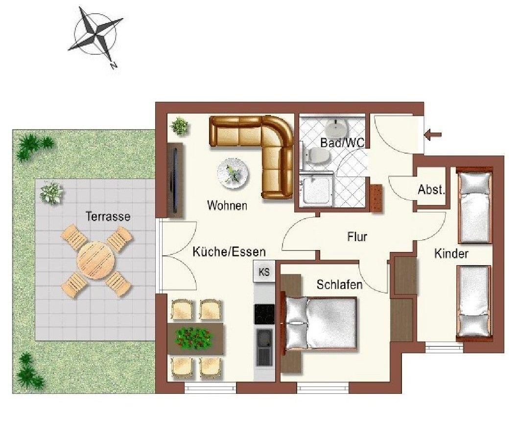 Die freundliche und helle 3-Zimmer-Wohnung (ca. 51 m²) im Erdgeschoss besitzt ein hohes Maß an Funktionalität und ist komplett eingerichtet. Alle Fußböden der Wohnung sind gefliest.
