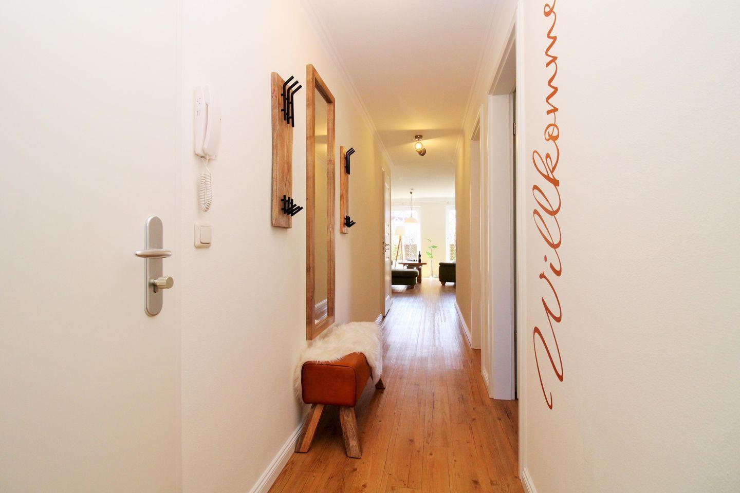 Vom geräumigen Flur mit Garderobe, Spiegel und kleiner Sitzbank erreichen Sie bequem alle Räume Ihrer Ferienwohnung.
