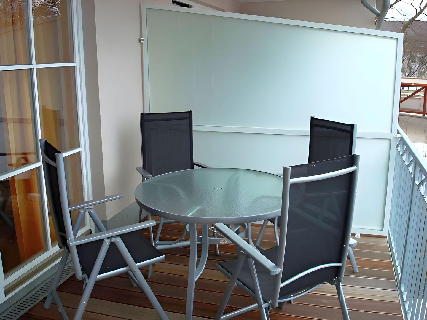 Balkon in Westausrichtung. Auf dem Balkon der Ferienwohnung steht für unsere