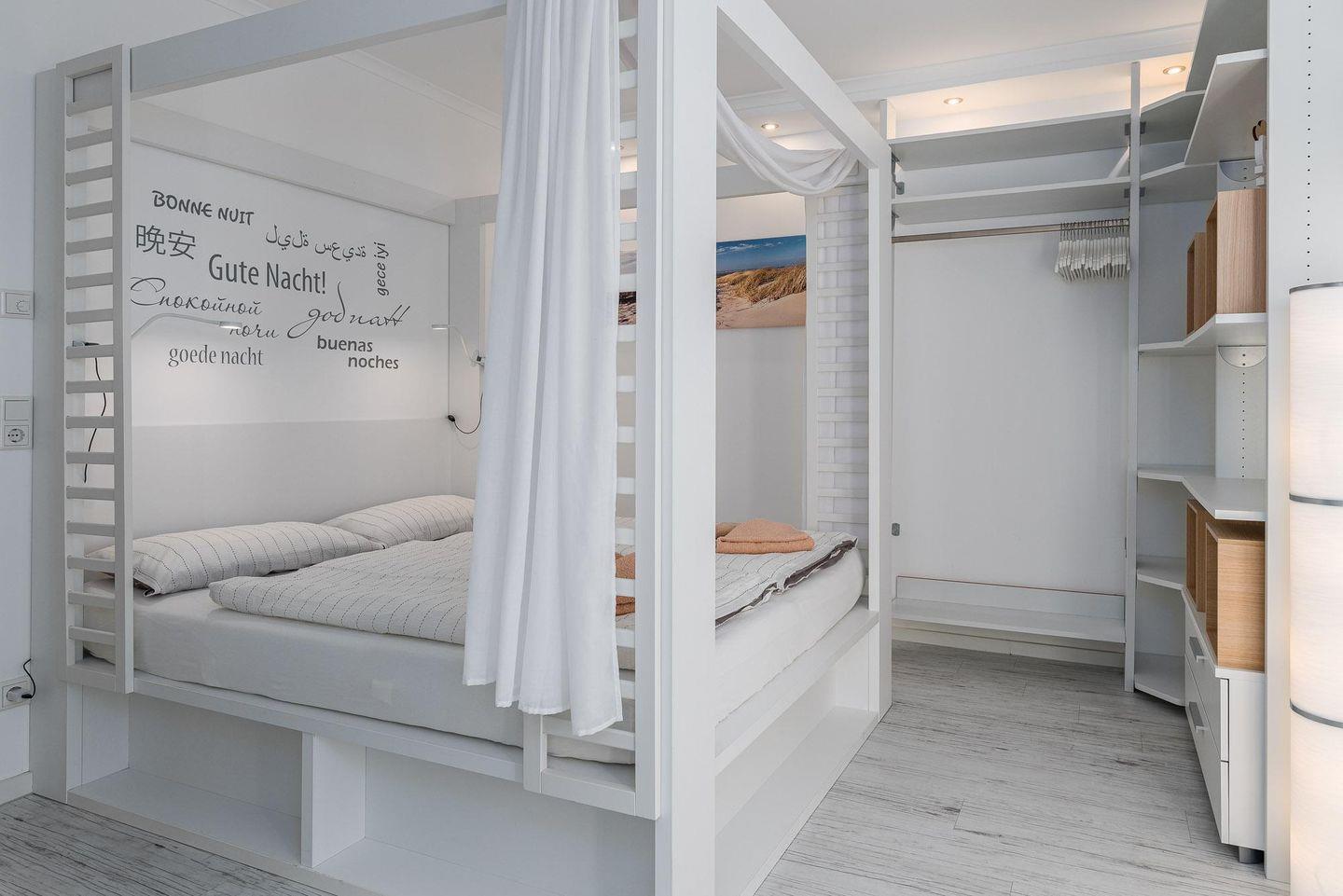 Im Schlafzimmer befindet sich ein komfortables Himmelbett (1,70x2,00) und ein