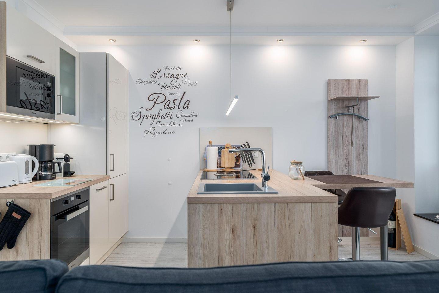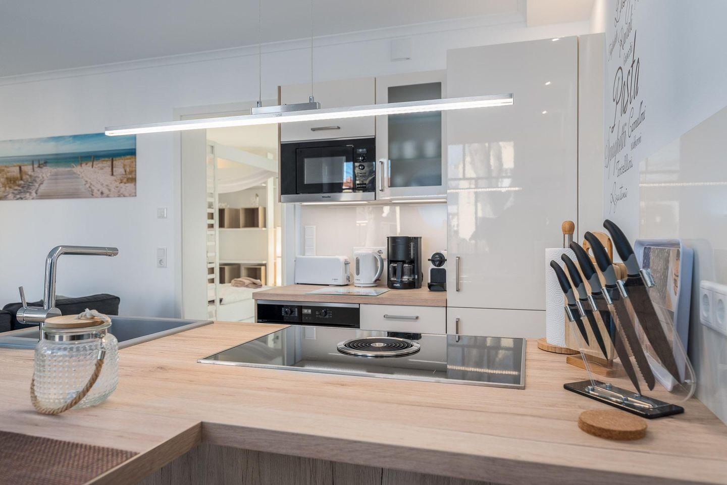 Gefrierfach, Geschirrspüler, Backofen, Mikrowelle und Induktionskochfeld. Bequem