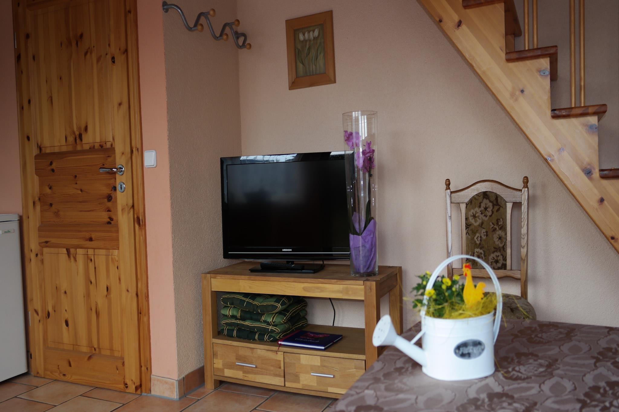 Hvis du elsker den friske landluft, er dette det perfekte sted for dig. I en idyllisk, landlig beliggenhed nær Østersøen tilbyder dette familievenlige feriehus det perfekte tilflugtssted for dem, der søger afslapning og naturelskere._x000D_ _x000D_ Det komfortabelt indrettede to-værelses feriehus strækker sig over to plan og kan rumme op til fem personer. Det har en indbydende opholdsstue, et fuldt udstyret køkken, et separat soveværelse og et badeværelse med bruser og toilet._x000D_ _x000D_ Saunaen og spabadet (mod betaling) står til rådighed for alle gæster efter anmodning. En hyggelig solterrasse med havemøbler inviterer dig til at slappe af. Der er intet, der forhindrer dig i at nyde grillfester og sociale aftener udendørs. En gynge er tilgængelig for yngre gæster at lege på. Den nærliggende cykelsti ved Østersøen er ideel til cykling og rulleskøjteløb. Smukke strande og naturreservatet Conventer See er inden for rækkevidde. Der er også gode indkøbsmuligheder i umiddelbar nærhed.
